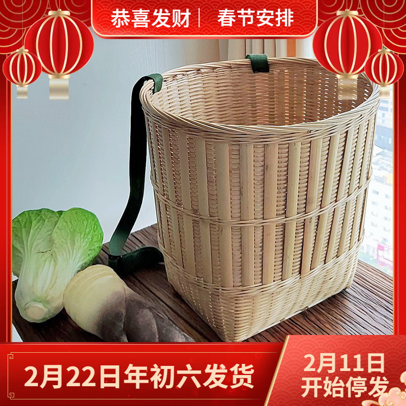竹編みダンス道具農業用手作り古風収納竹かご野菜摘み茶葉竹かごバックかご