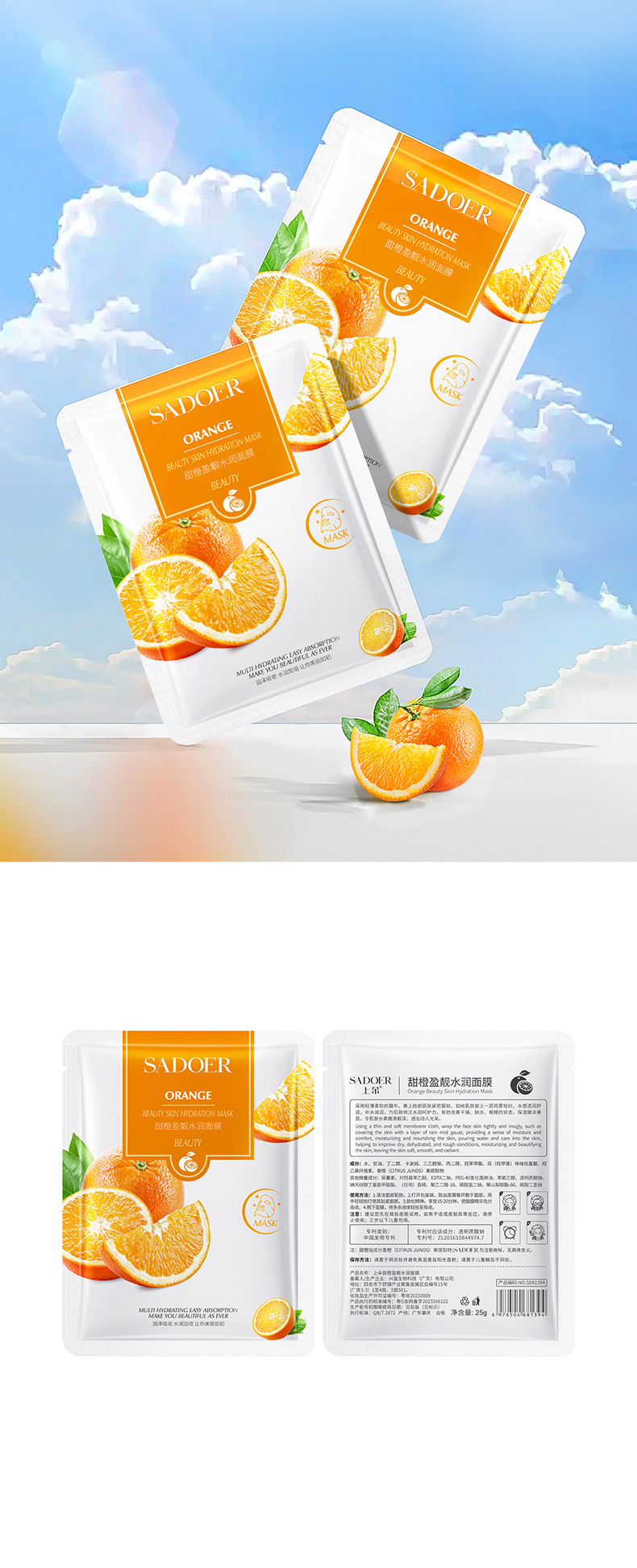完全英語 SADOER 植物フルーツシリーズ水分補給フェイシャルマスク保湿保湿マスク越境卸売