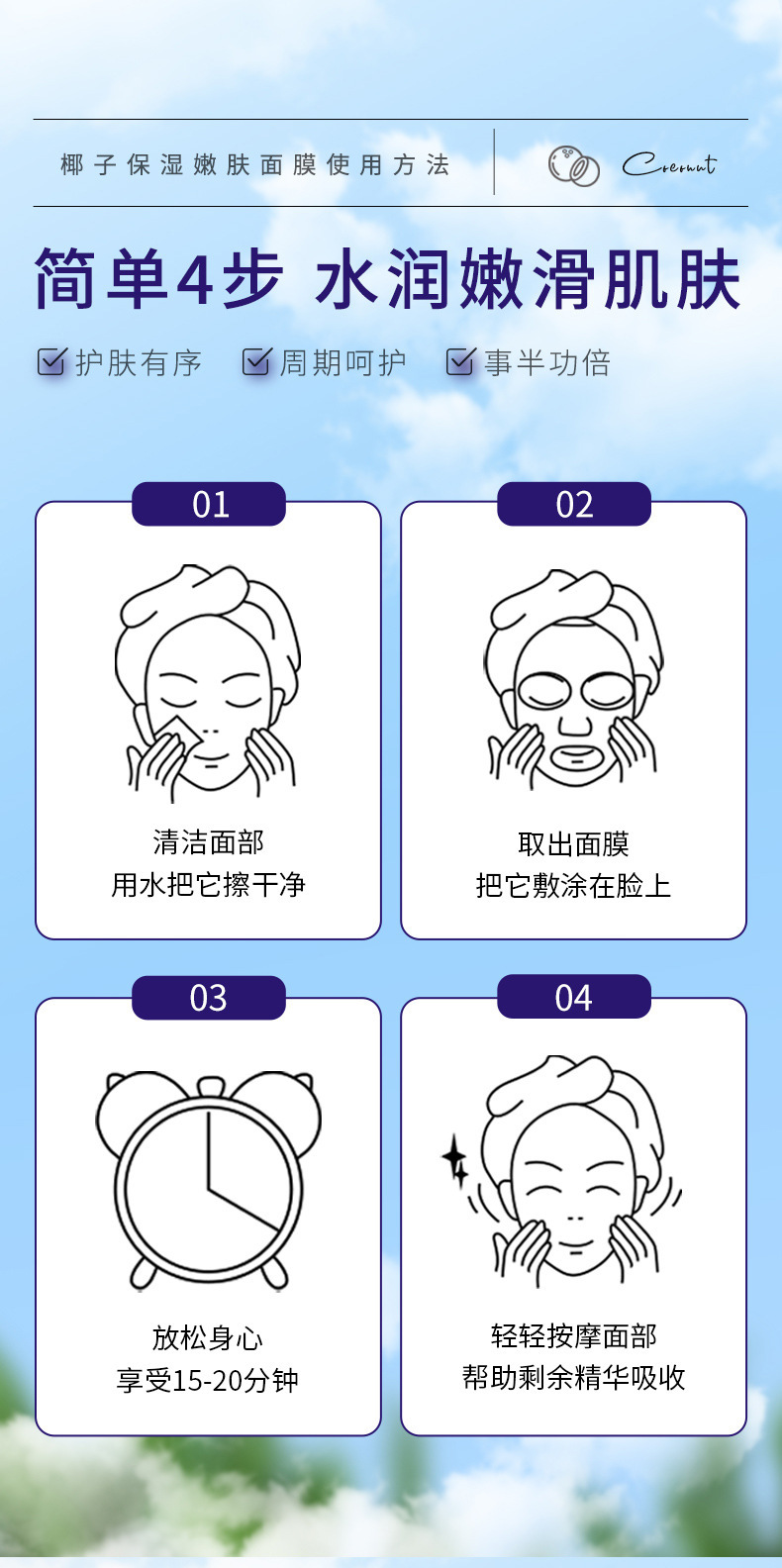 韓 _ 植物マスクは水を補ってコラーゲンを保湿します。肌の色を明るくします。