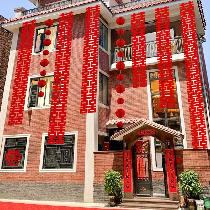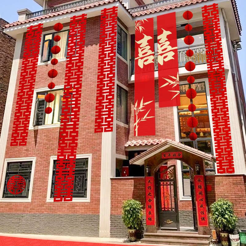 長条喜字農村結婚庭装飾花喜字貼り専用結婚部屋配置セット結婚式男女方