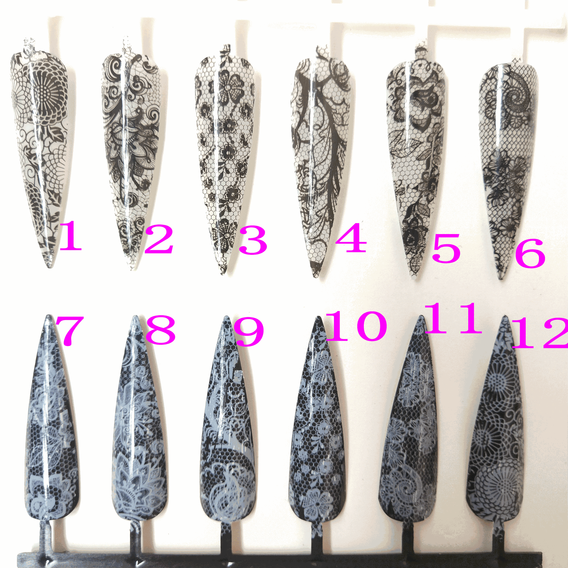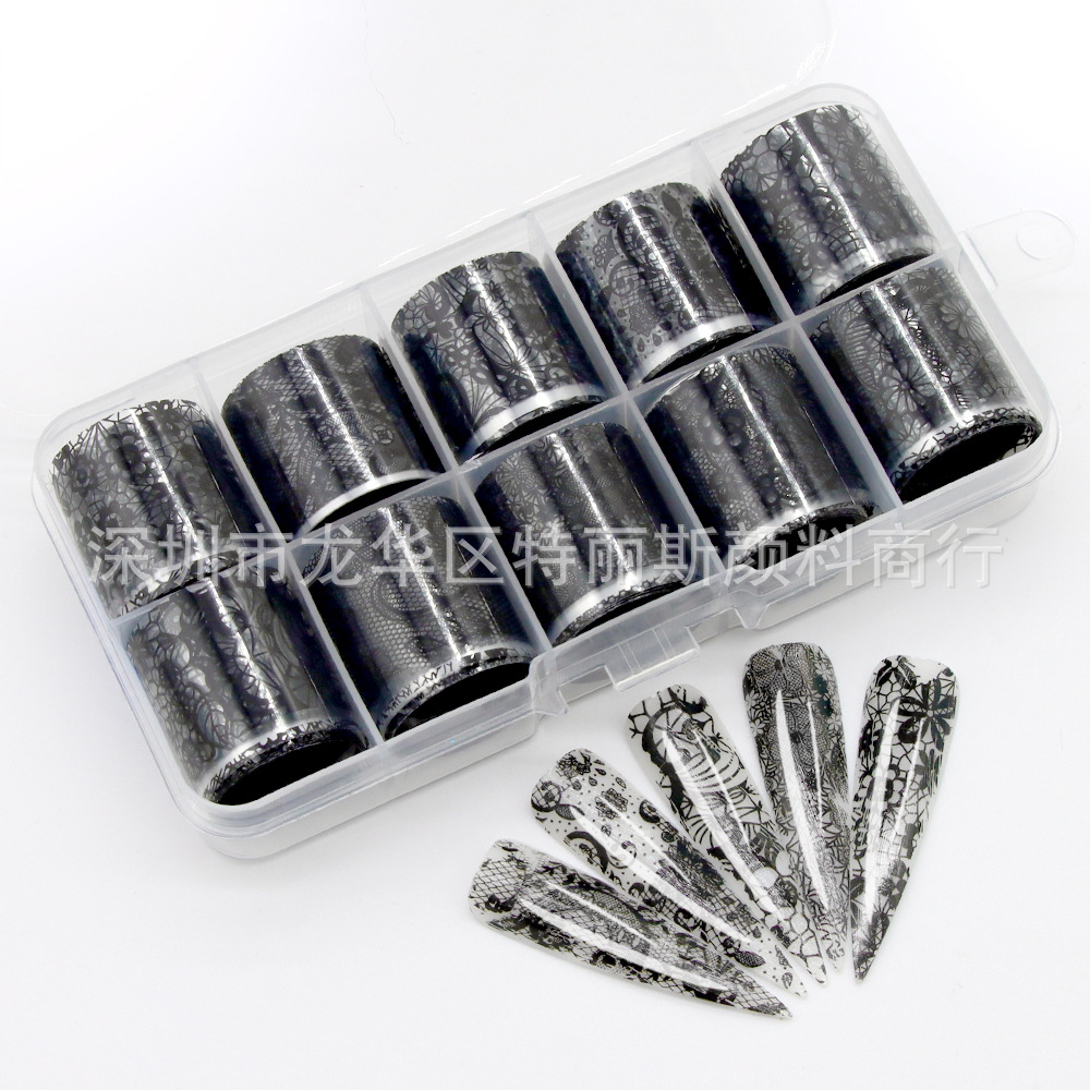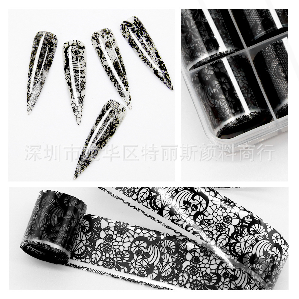 国境を越えた日系レトロなネイルアート転写シール10格星空白黒セクシーレースの小さな砕花レースの爪