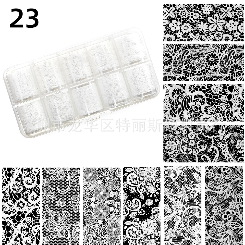 クロスボーダーネイルステッカー星空和風ボックス入り転写紙白黒レースフラワー混合転写ステッカー韓国ステッカー