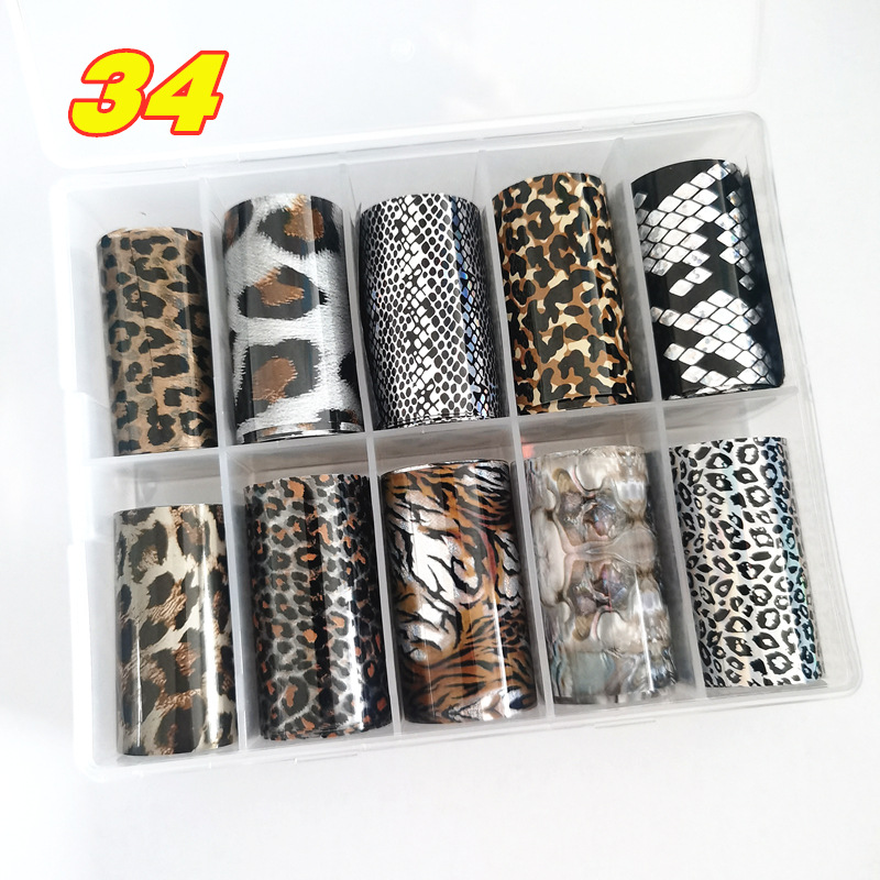 34ネイル星空ステッカー箱入り転写紙ヒョウ柄ネイルステッカー10色セット装飾品卸売り