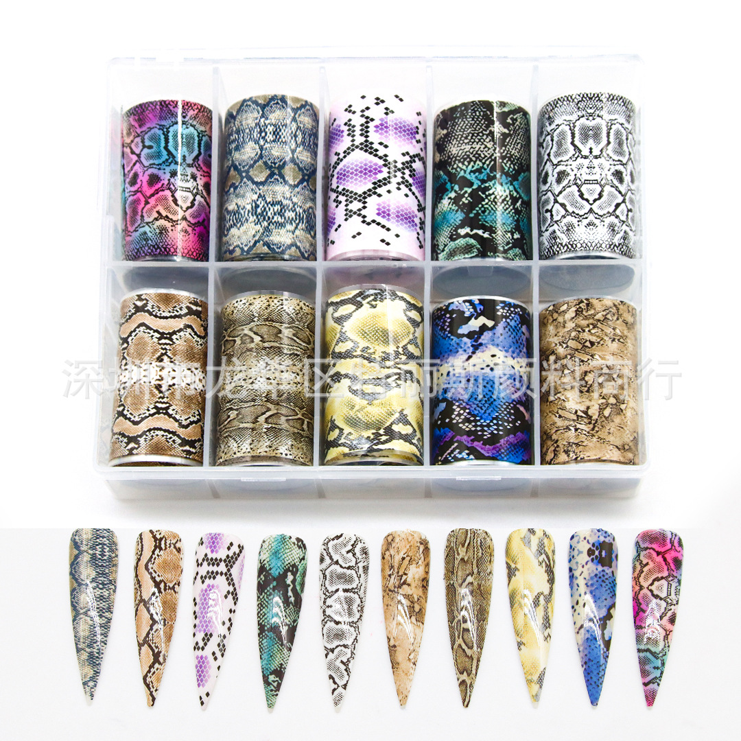 ネイル星空転写紙動物紋星空紙蛇紋爪シール10格/箱ネイルアクセサリー