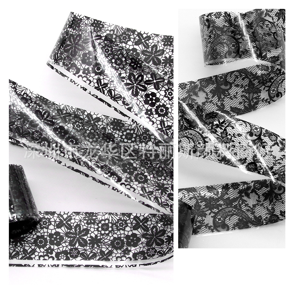 夏ネイルレース星空紙黒白レース花柄爪飾りdiy爪転写シール