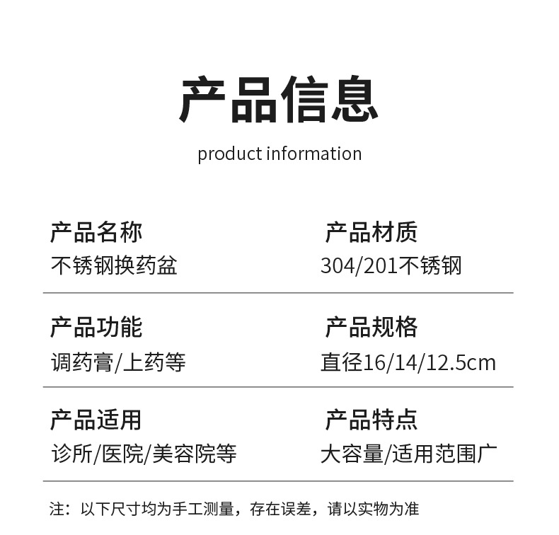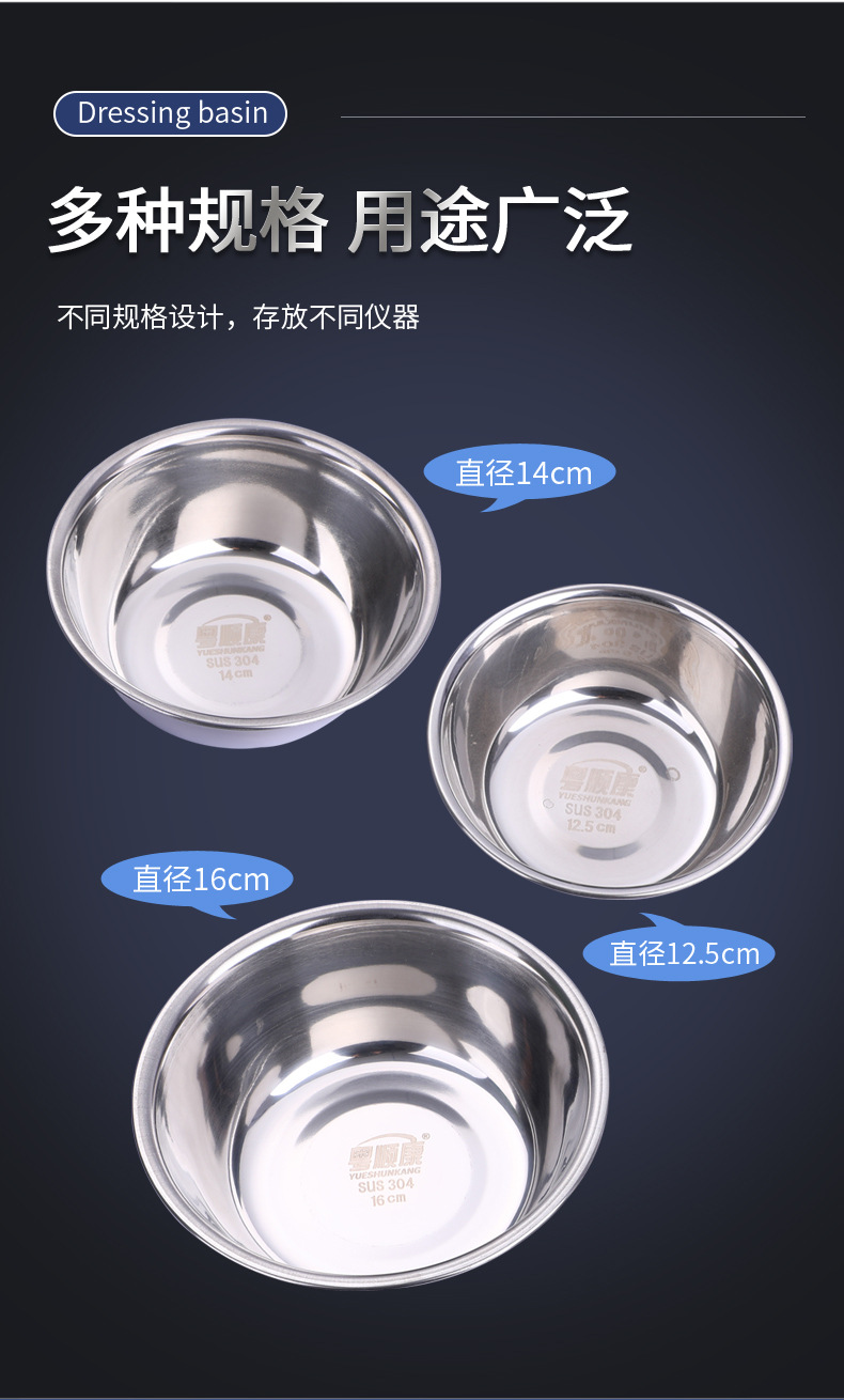 ステンレス製の薬交換ボウルは14センチ16cmの薬交換ボウルのピンセットボウルは304と201の治療ボウルが一つで販売されている