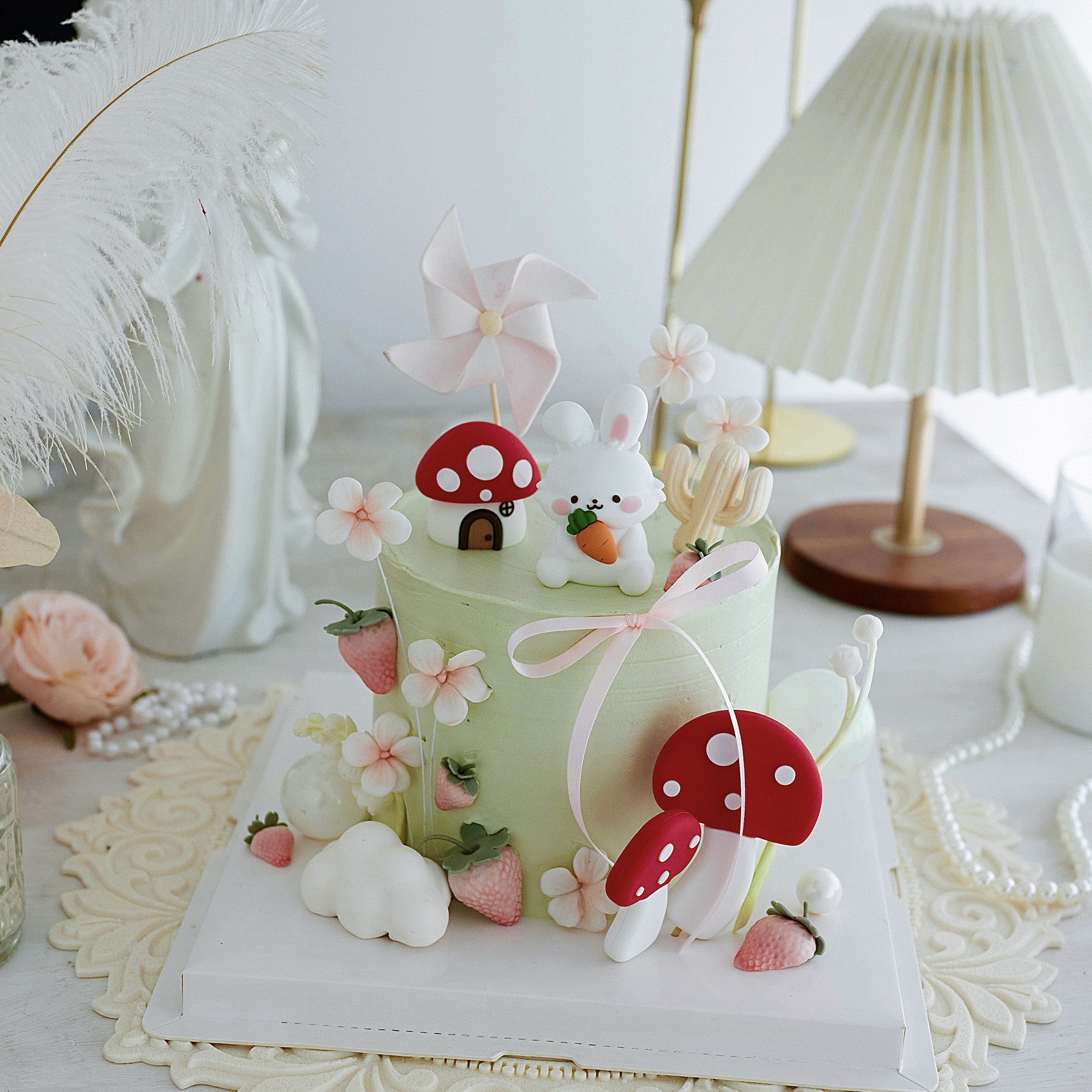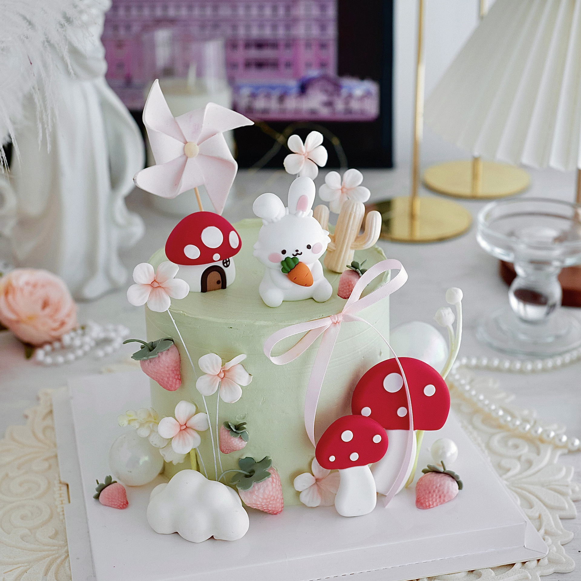 网红蜜蜂罐蜜蜂生日蛋糕装扮蘑菇桌面摆件甜品台烘焙车载卡通蛋糕