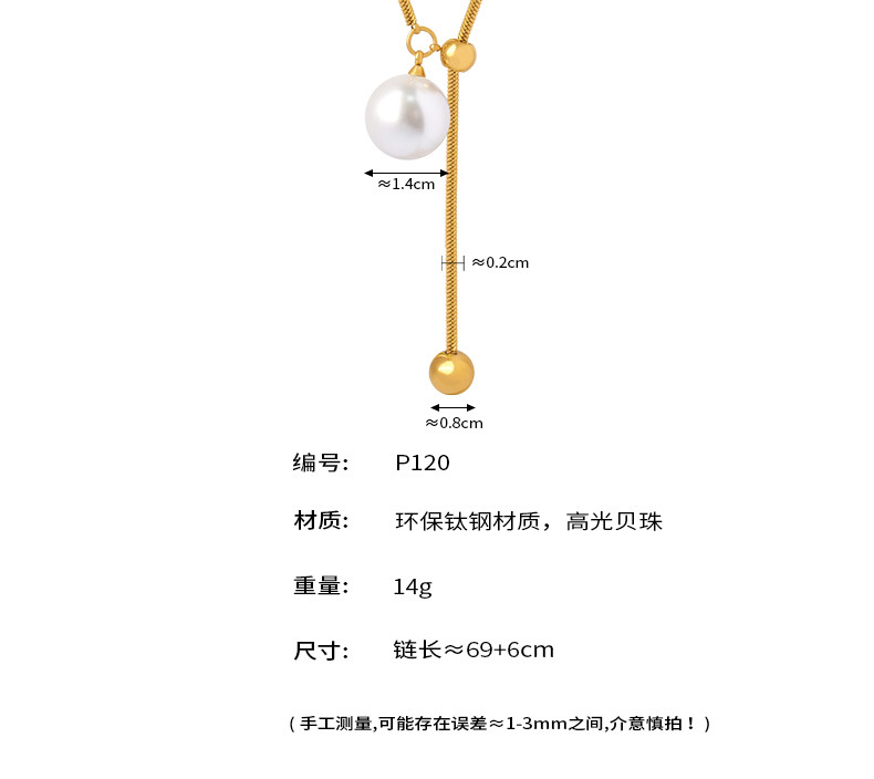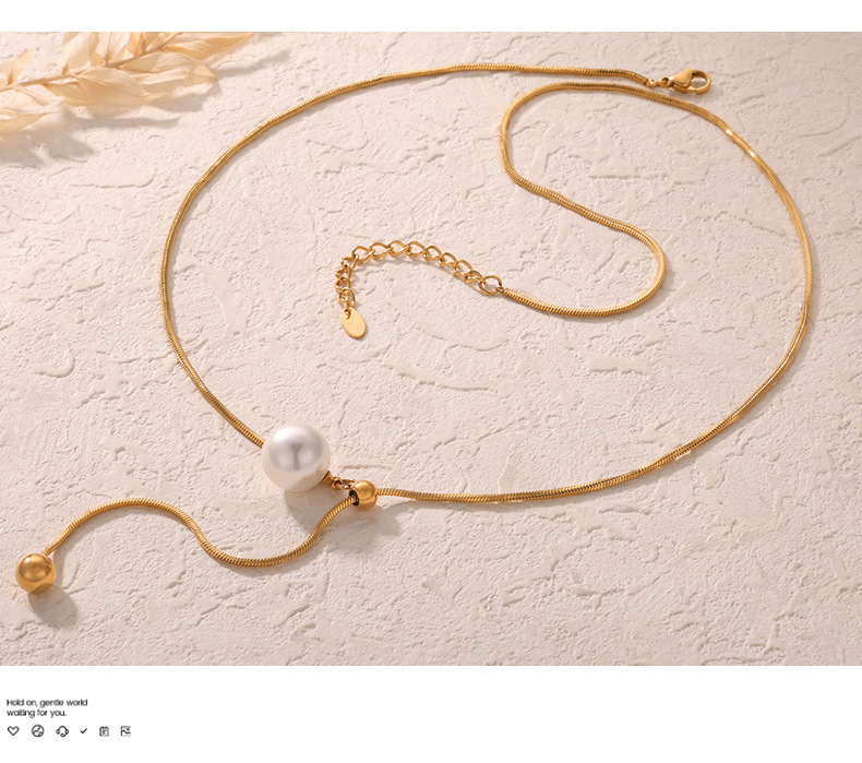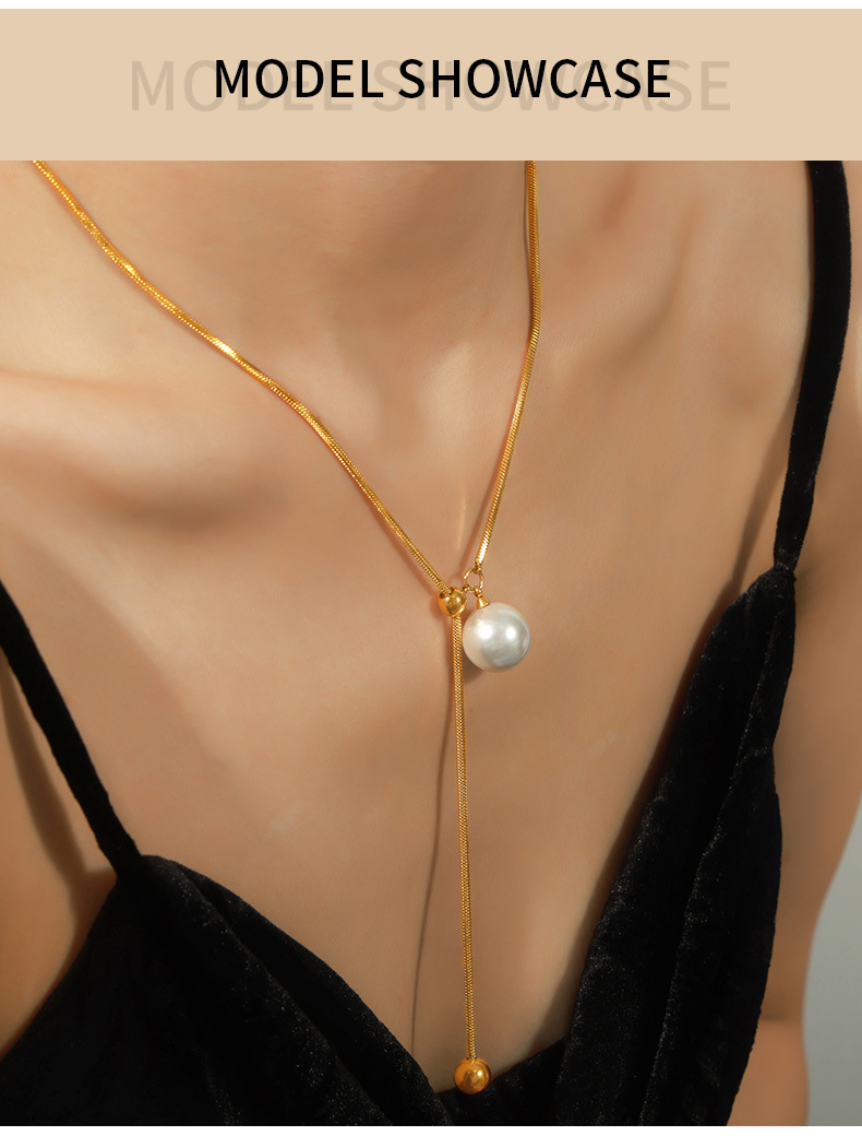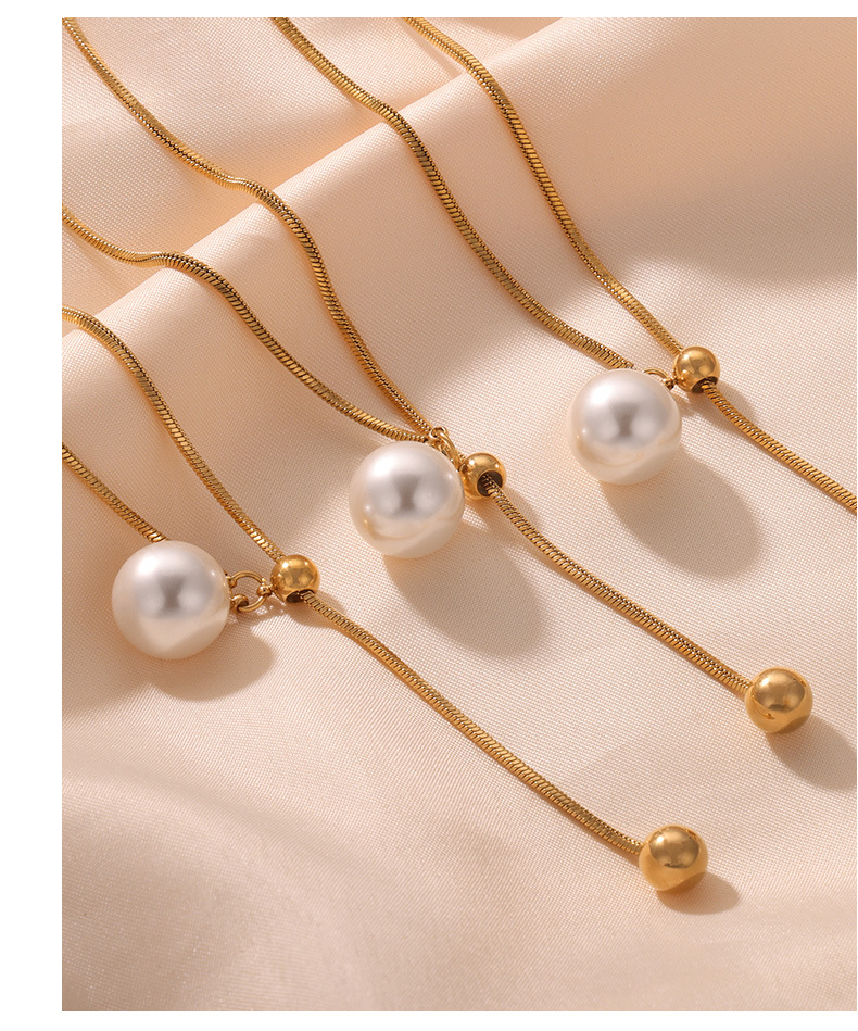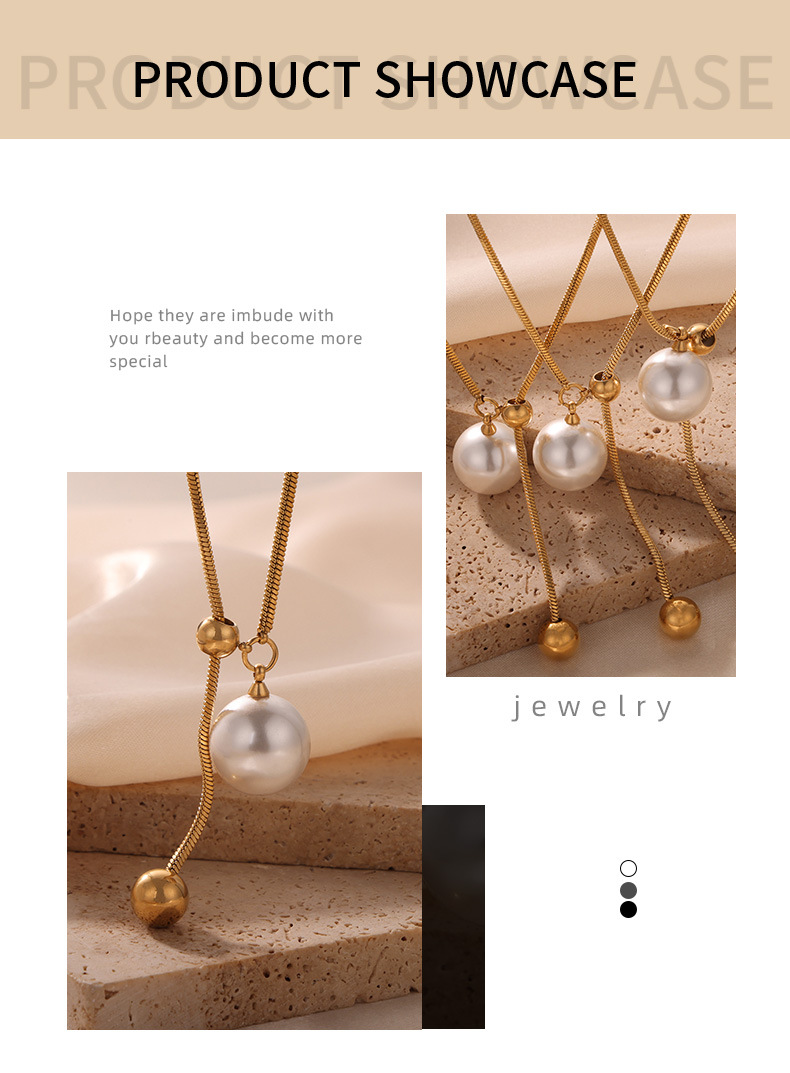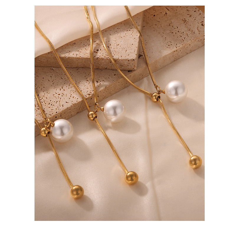 新型ファッション軽豪華シンプルチタン鋼金メッキ玉流蘇ハイライト貝珠ペンダントネックレスアクセサリー卸売り女性