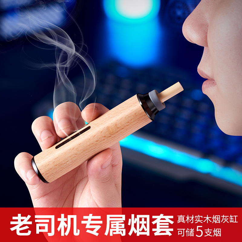 车载烟灰缸吸烟不掉灰抽烟开车烟斗盒汽车用免弹灰实木防飞灰神器
