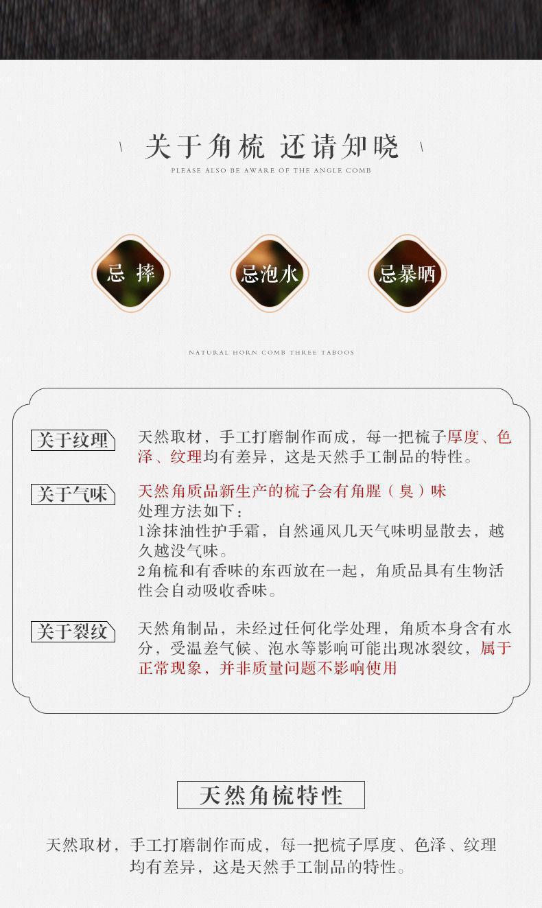 工厂直销牛角梳天然加厚大号白水牛角梳子疏通经络按摩护发防静电