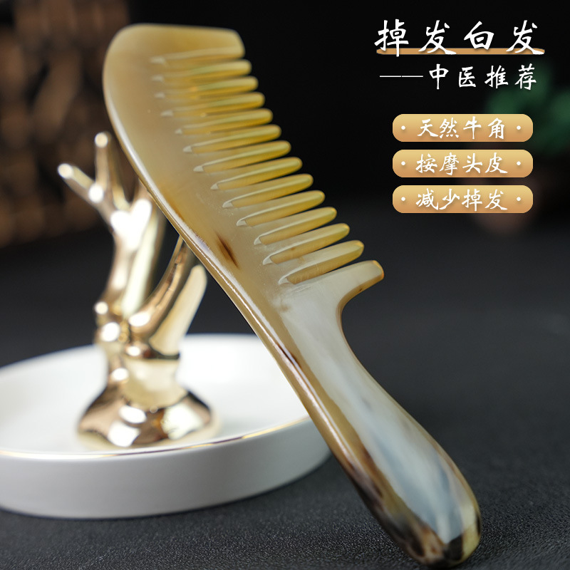 工場直販 天然大型ヤクの角櫛 経絡を整え頭をマッサージする 男女兼用 ギフトに最適 髪を傷めない