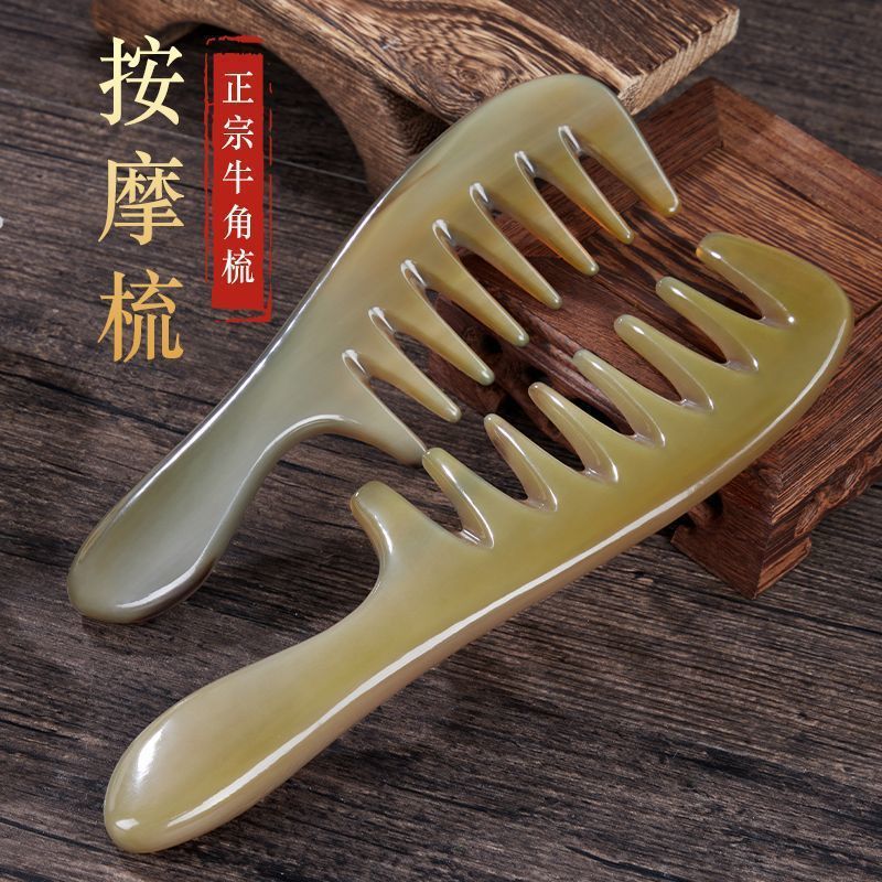 牛角コーム 天然本物の本物のヤク角マッサージコーム 女性の頭皮頭経絡コーム 公式旗艦店