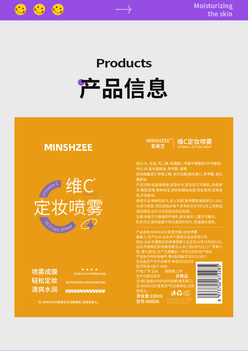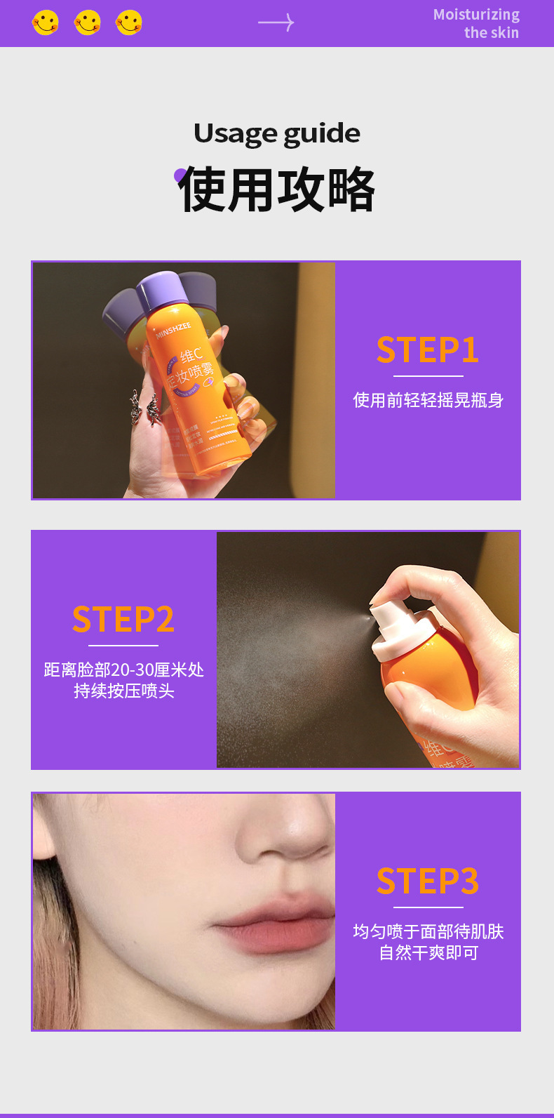 Douyin MINSHZEE ミンシジビタミン C メイクアップ セッティング スプレー ロングラスティング メイクアップ ロック フレッシュ 抗酸化 VC ハイドレーティング スプレー アンチ