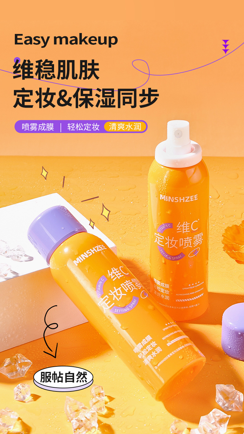 ミンシジビタミンCメイクアップセッティングスプレー、落ちにくい、長時間キープ、VC保湿、女性用メイクアップセッティングスプレー、越境販売