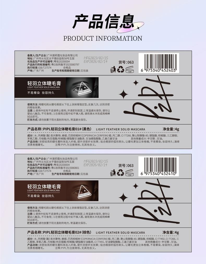 PIPLマスカラ、長くカールして自然に分岐したまつげ、ウォータープルーフ、汗に強い、にじみにくい、落ちにくい、ブラック、ブラウン
