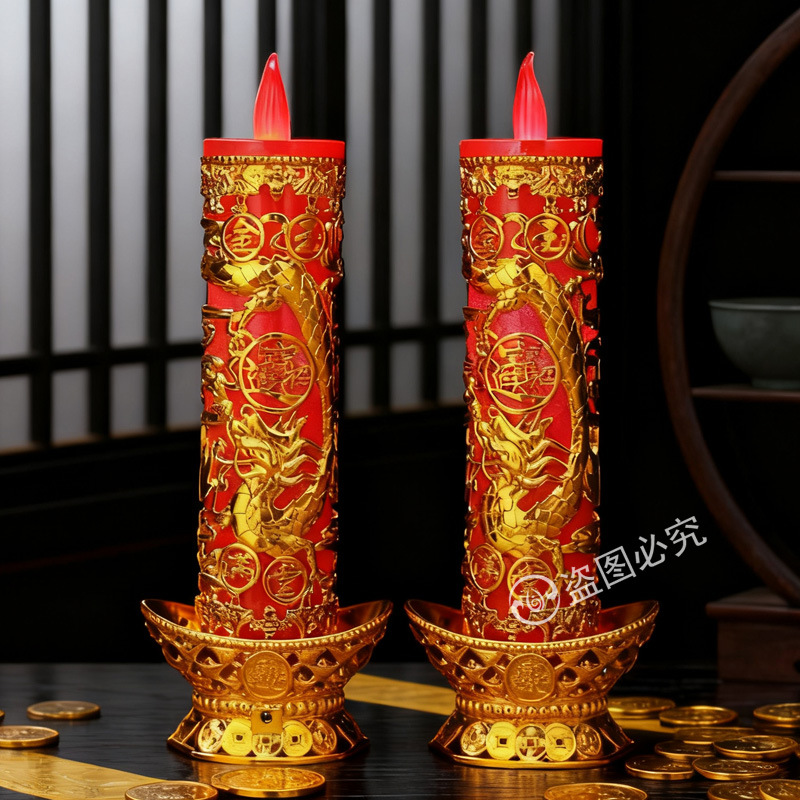 LED双龍シミュレーションキャンドルスイング燭台電気香炉無煙神台供灯財神灯プラグ電気両用一体