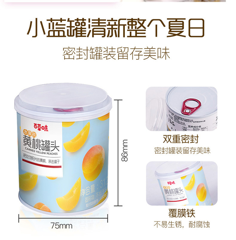 包郵便百草味黄桃缶詰312g缶インスタント果物缶詰砂糖水下昼寝茶ネット赤レジャー間食