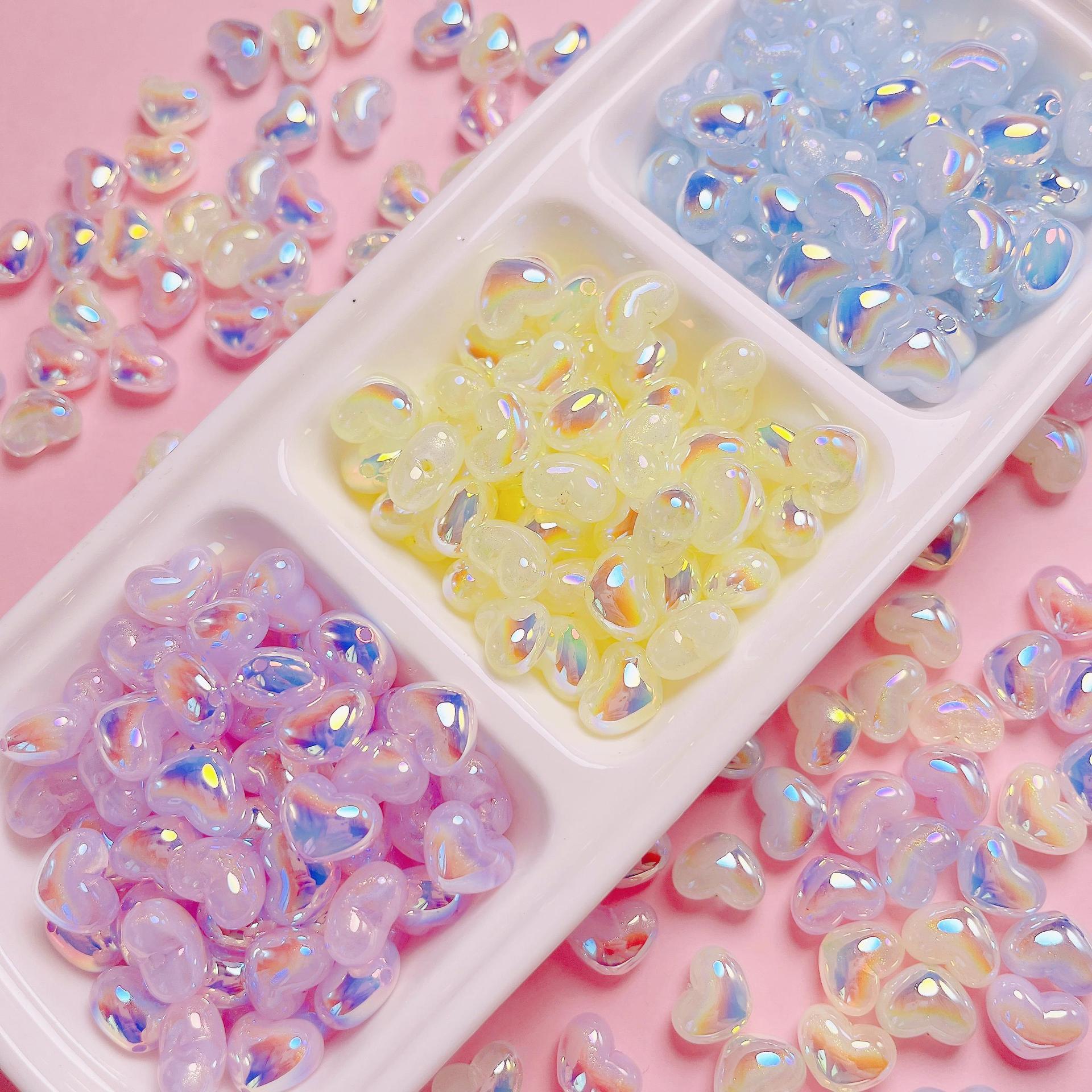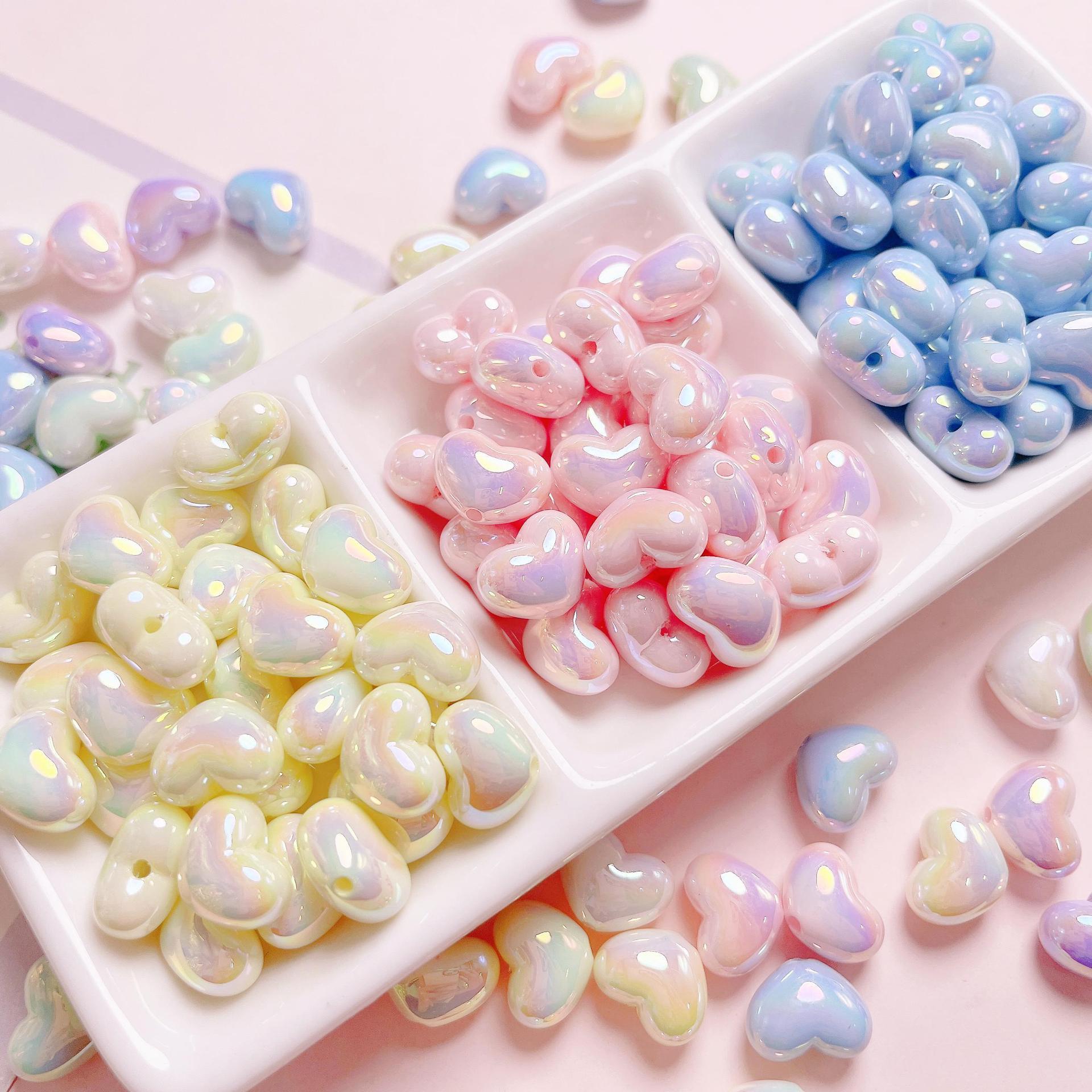 アクリルクリーム系の小さな愛の縦穴ビーズ手作りDIY携帯電話チェーン材料アクセサリー部品