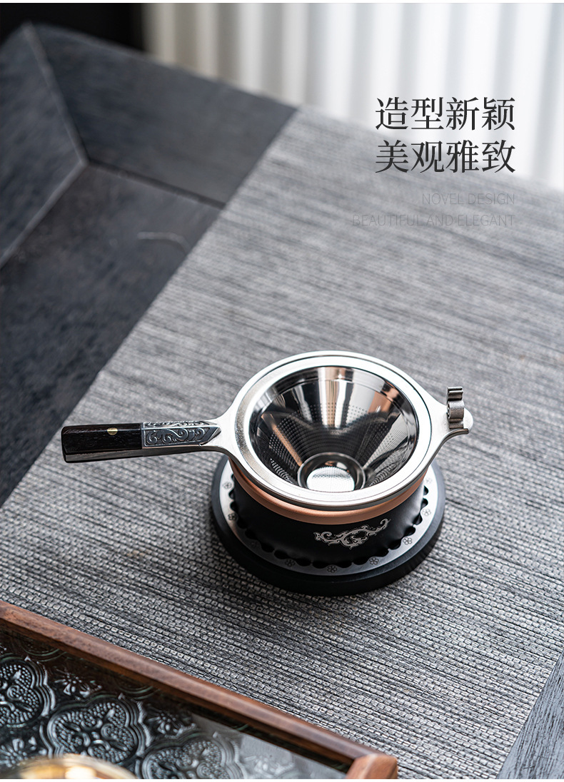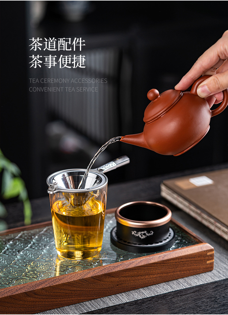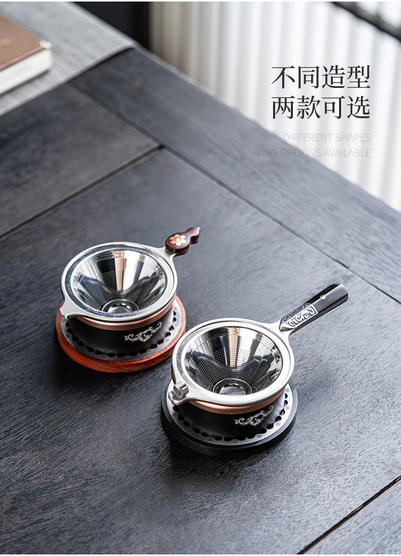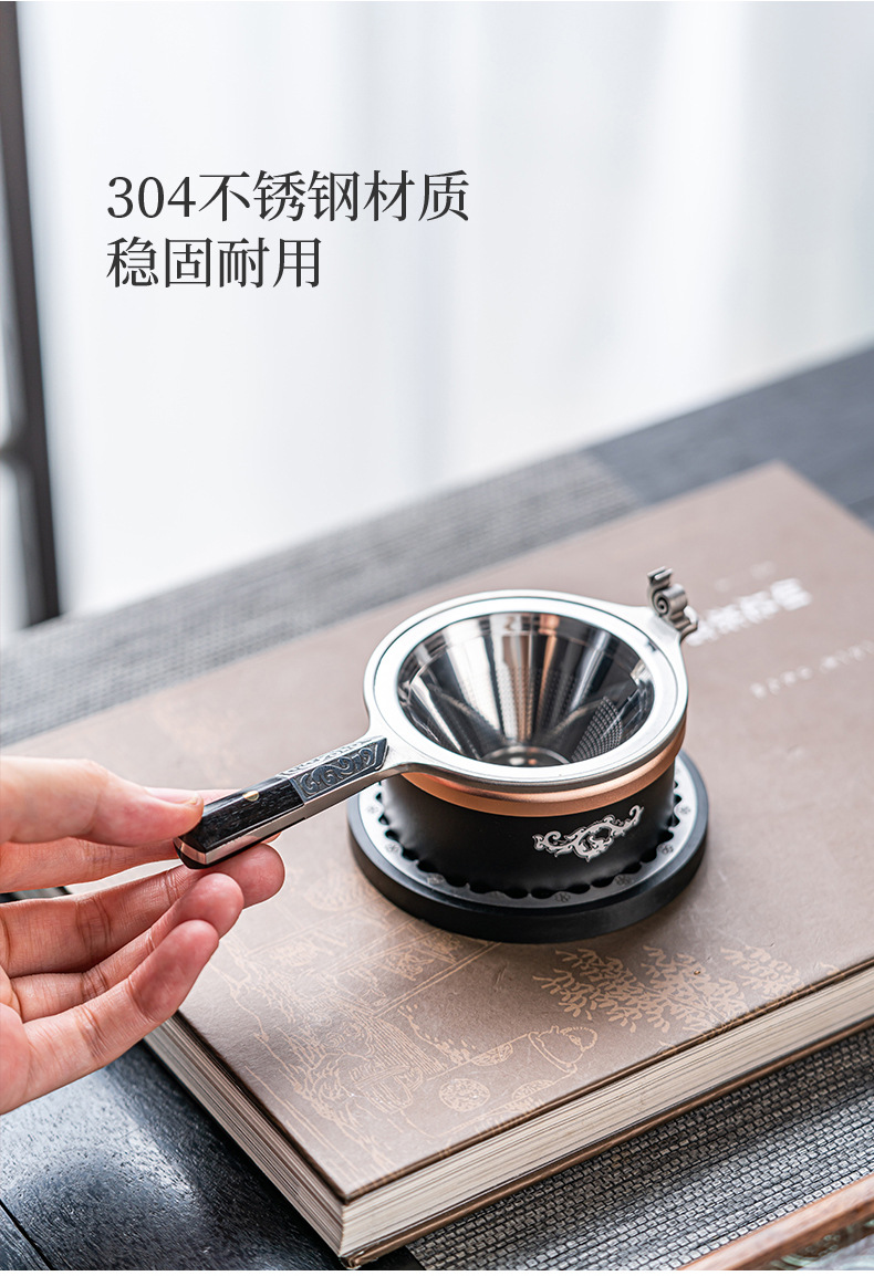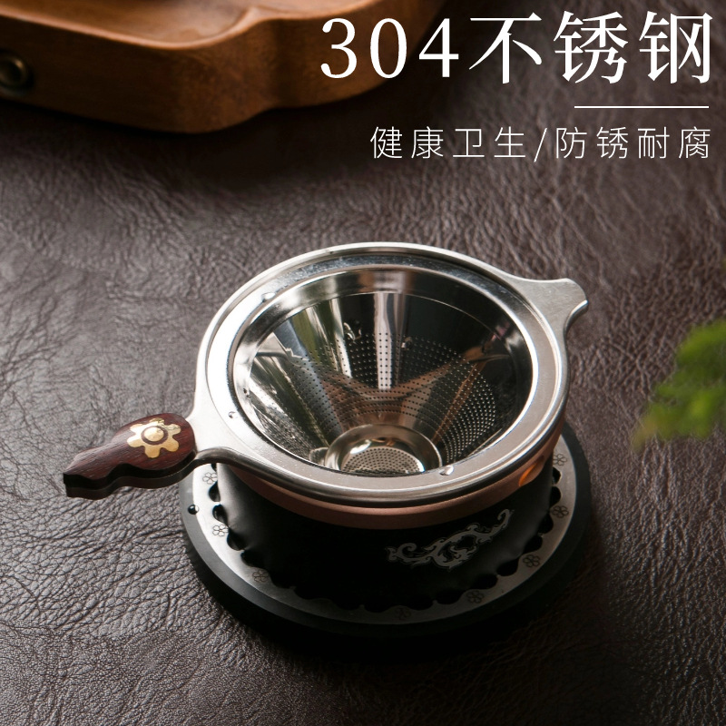 304不锈钢茶滤茶漏架茶叶过滤器日式高档茶具配件过滤网带底座
