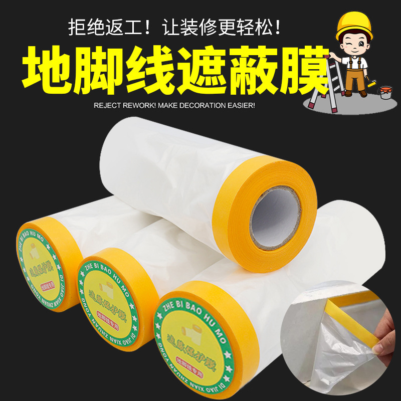 家の内装壁面の床の線の保護膜の塗装は壁の足を蹴る線を塗って壁の窓の台の遮蔽の保護膜を貼り付けます。