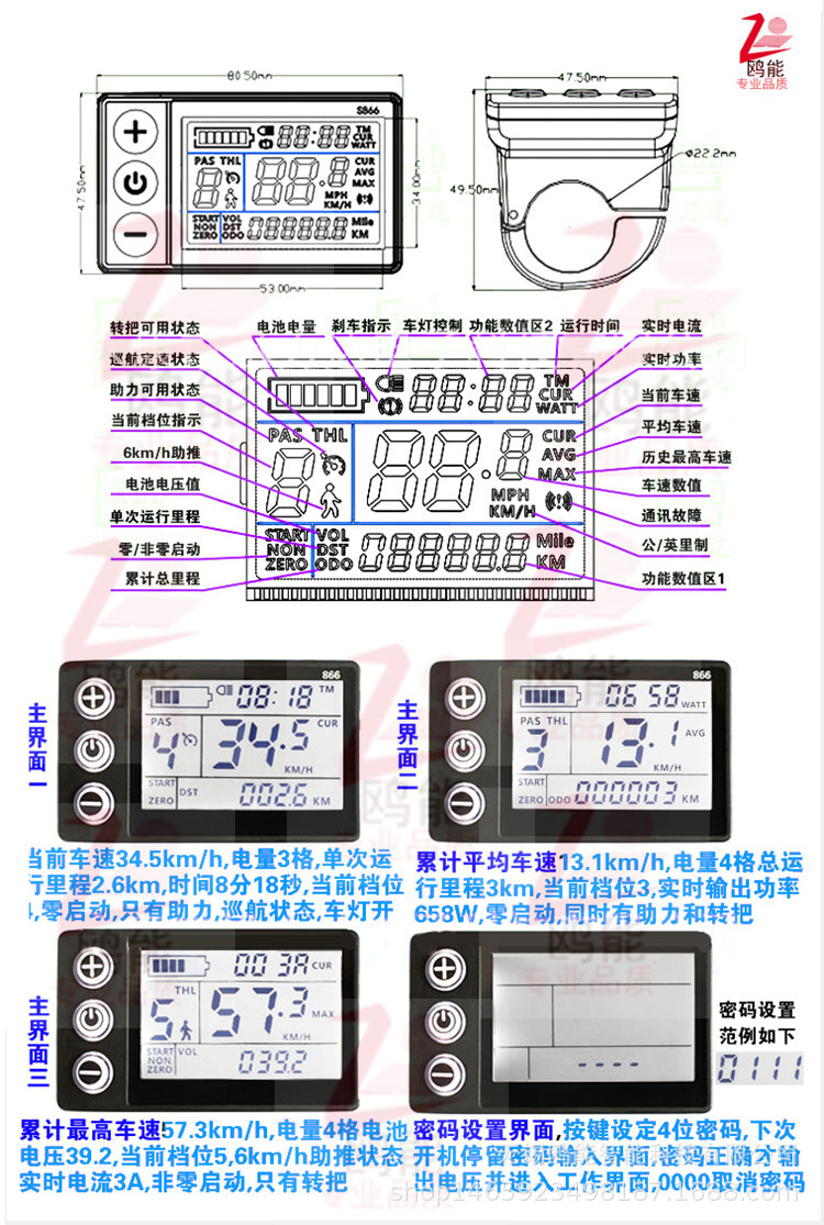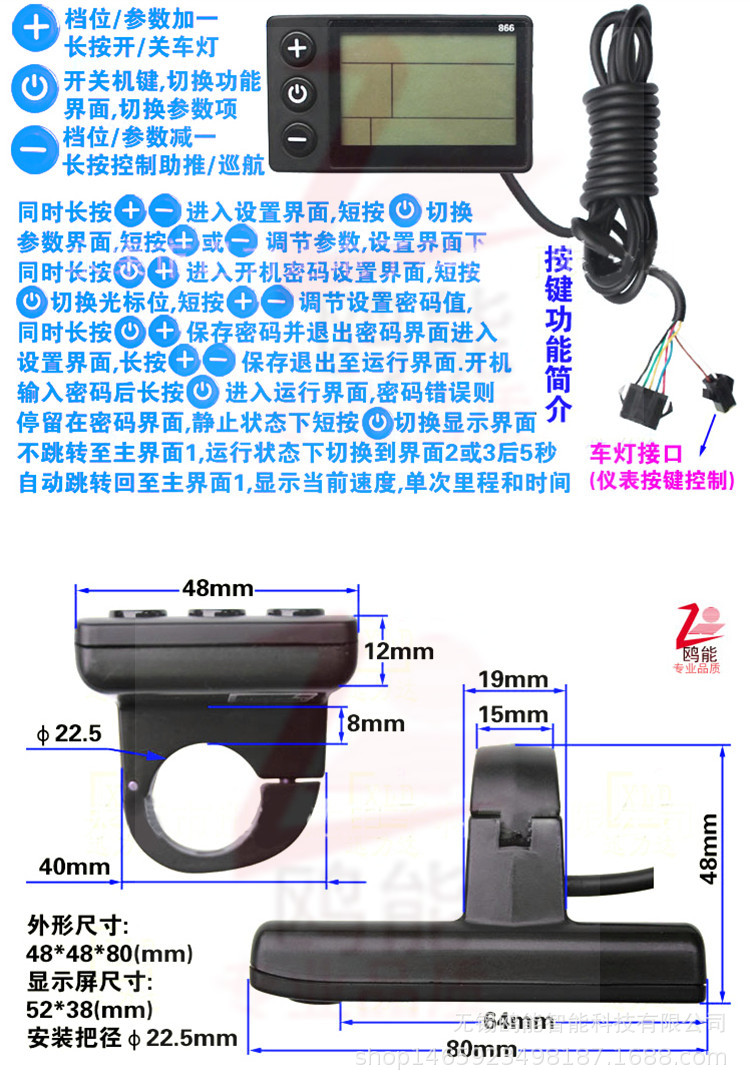 電動自転車マウンテンバイクスクーターlcd液晶メーター500コントローラ電力量速度表示正弦波