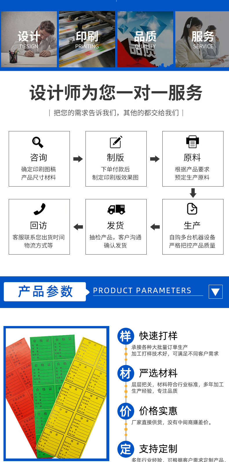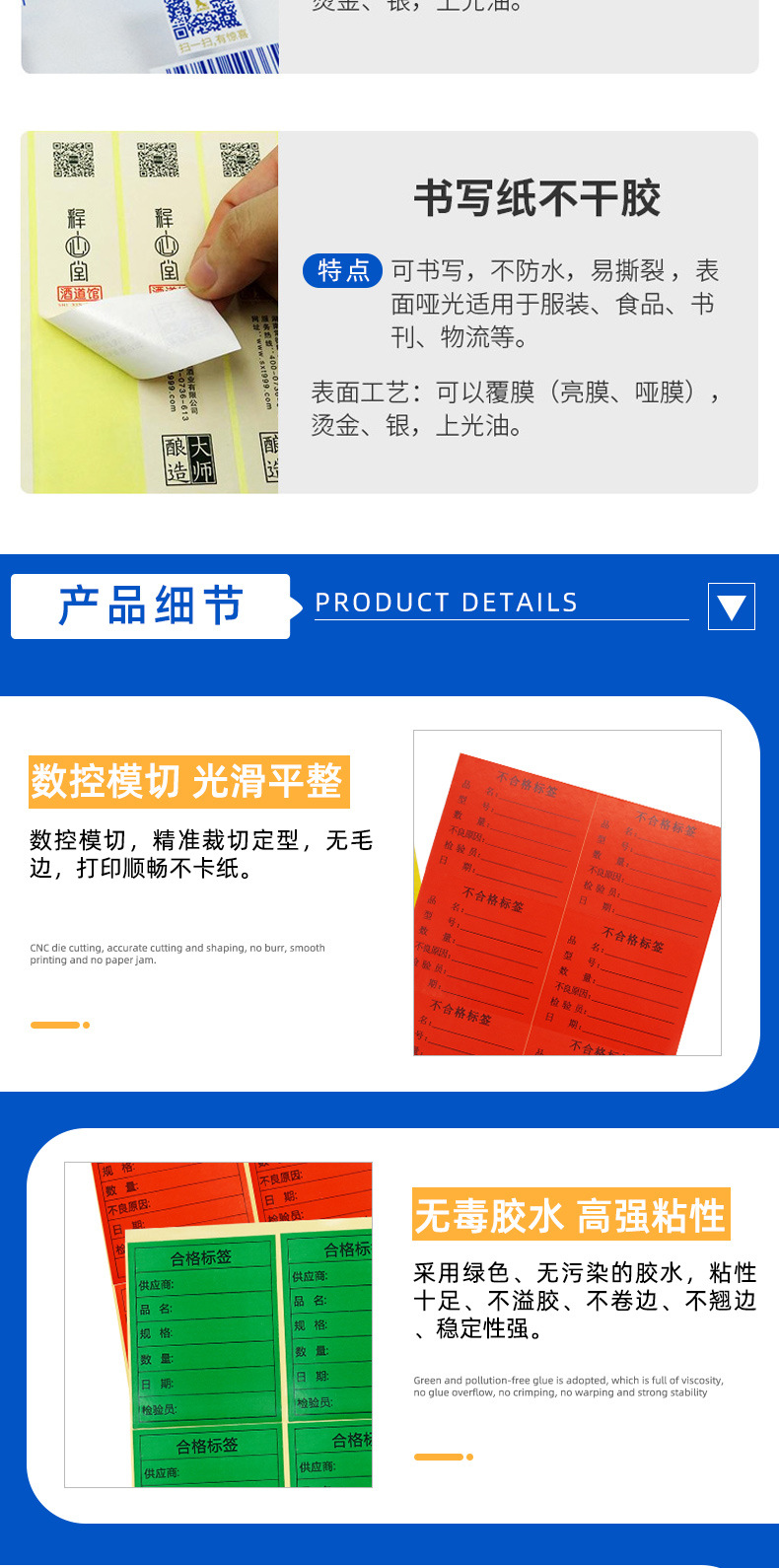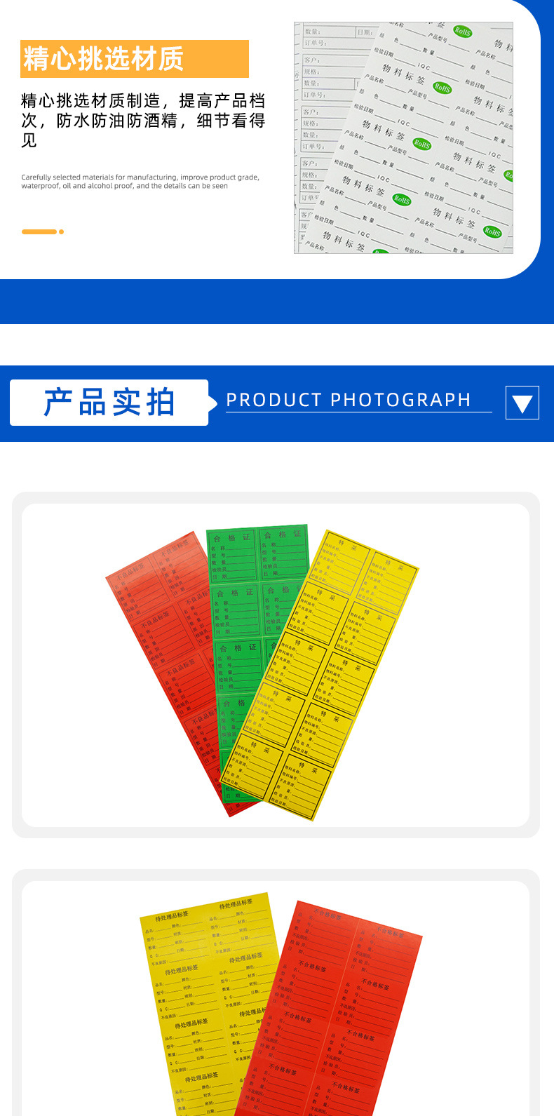 出荷材料ラベル不乾性標識カード不良品製品合格証シール卸売り防水防油紙シール