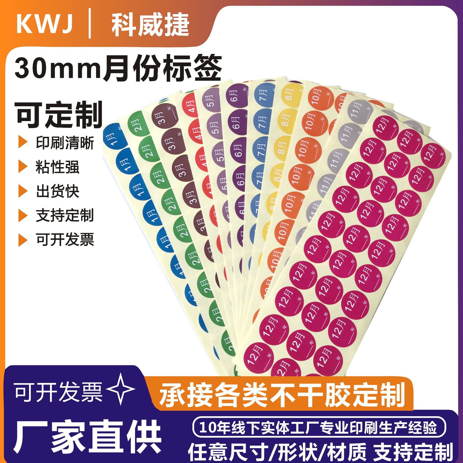 カラー月デジタルシール1-12月デジタル分類ラベルステッカー30mm円形月ラベルシール