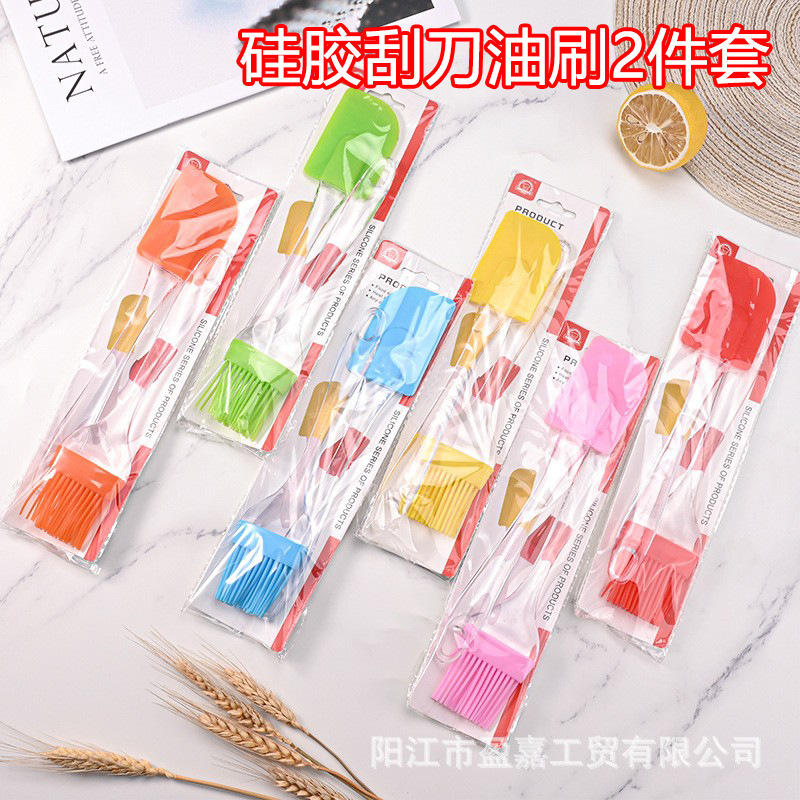 クロスボーダーシリコンスクレーパーオイルブラシ2点セットベーキングオイルブラシスクレーパーセットカラーカード付きopp袋包装ベーキングツール