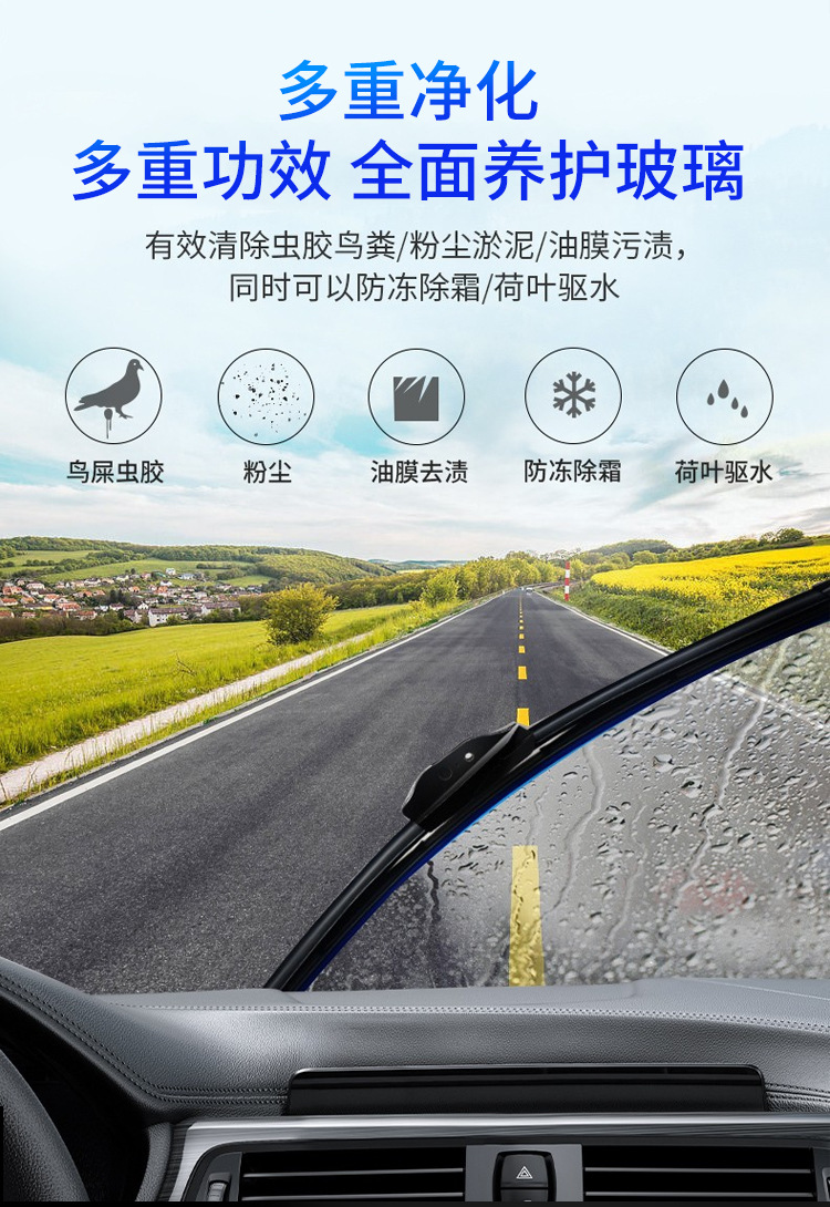 油膜除去ガラスクリーナー、夏の雨よけコーティング、車のガラスクリーナー、汚れ除去洗浄、冬の凍結防止、四季通用