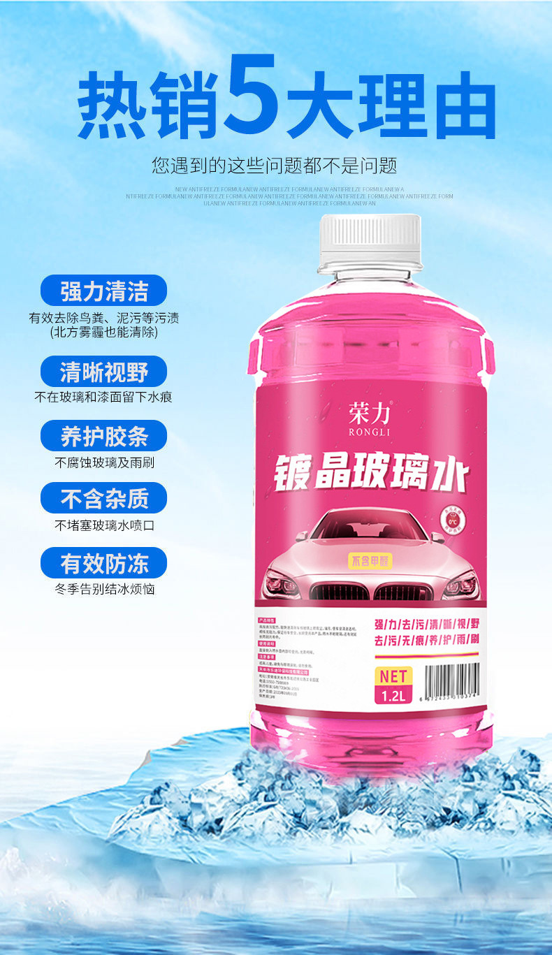 栄力2リットルガラス水自動車ワイパー仕上げ汚れ除去コーティング冬零下-15-40度凍結防止メーカー直販