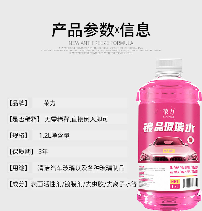 栄力クリスタルピンクガラスウォーター、凍結防止、油膜除去、四季通用、油汚れ除去、ガラスウォーター