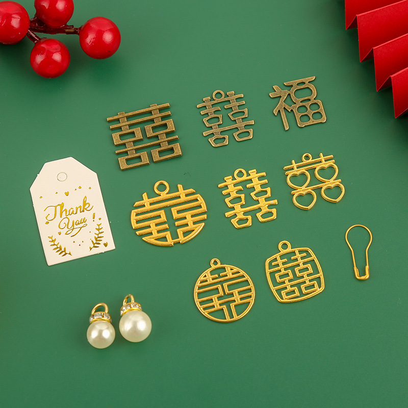 合金の喜字のお祝いの結婚式の用品の喜糖の箱の喜糖の袋の小さい金属の部品の中国風の装飾のペンダント