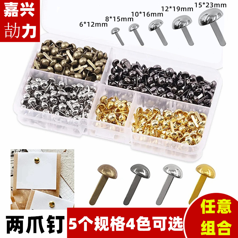 越境卸売 丸頭二本爪鋲 多様なサイズの箱詰めキノコ鋲 手作りDIYアクセサリー二本爪鋲
