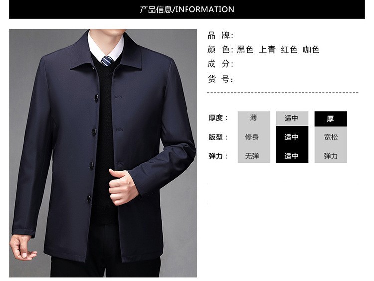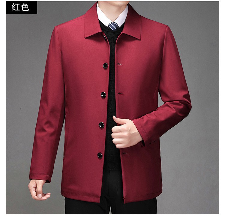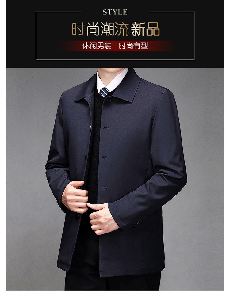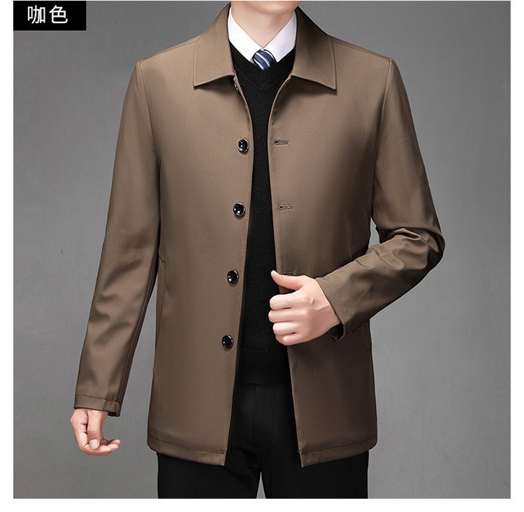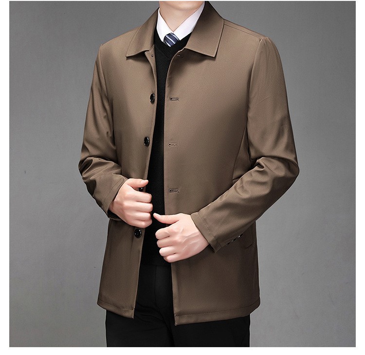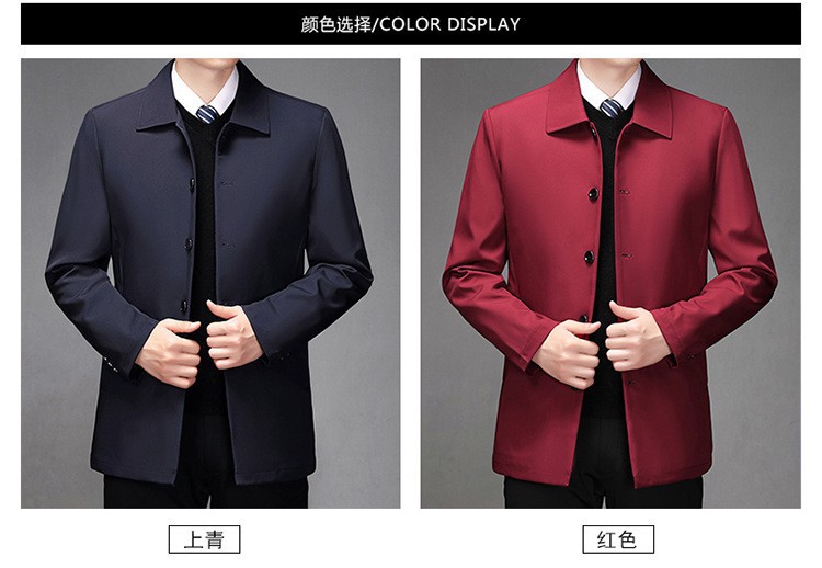 2024中年男性ジャケットゆるいカジュアル春秋服中高年お父さんコート単列ボタンナス0308