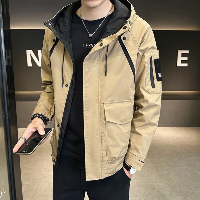 2025 春の新作メンズファッションショートフード付きカーゴジャケットトレンディなブランド多用途服-0108