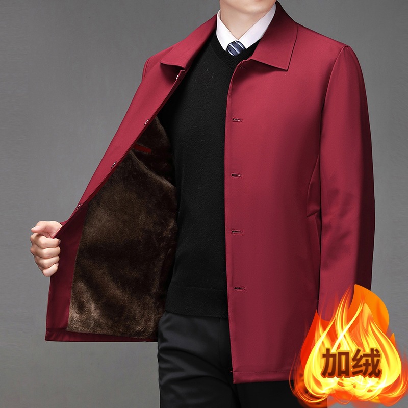 高級ジャケット男春と秋の中高年のゆったりとしたベルベットは、お父さんがランクアップしたビジネス襟の上着を着ている