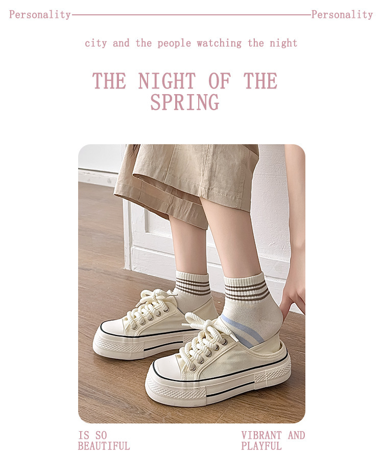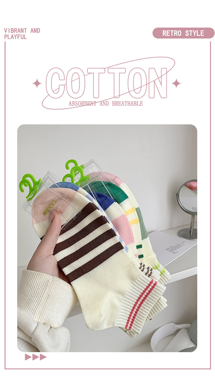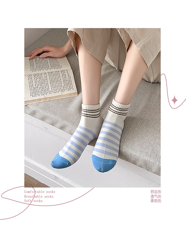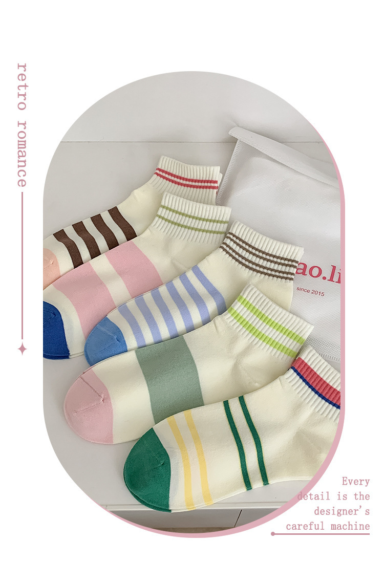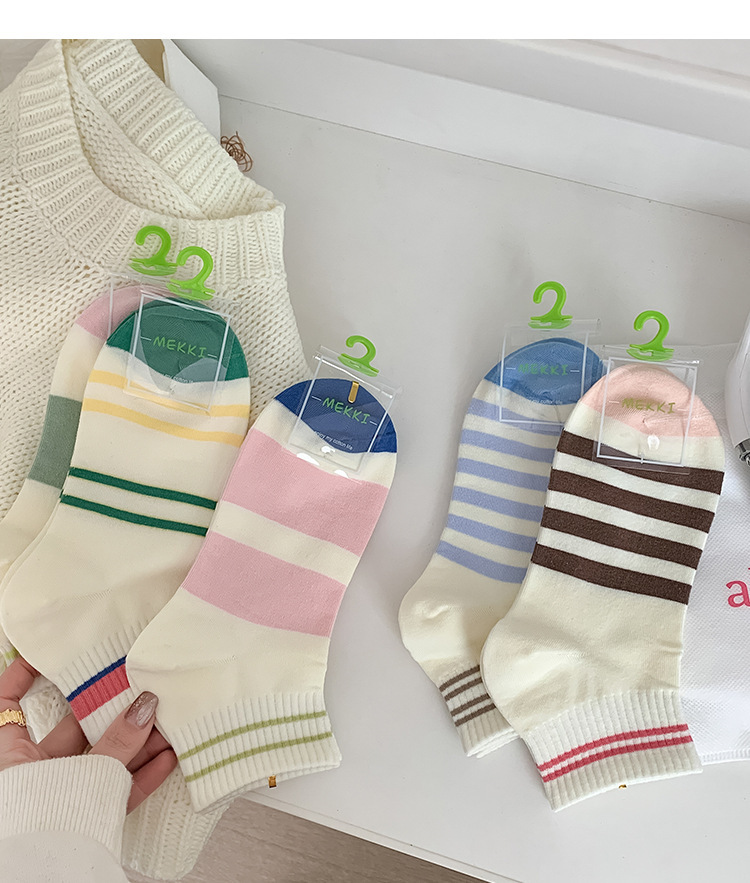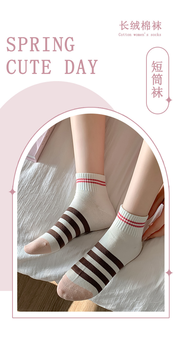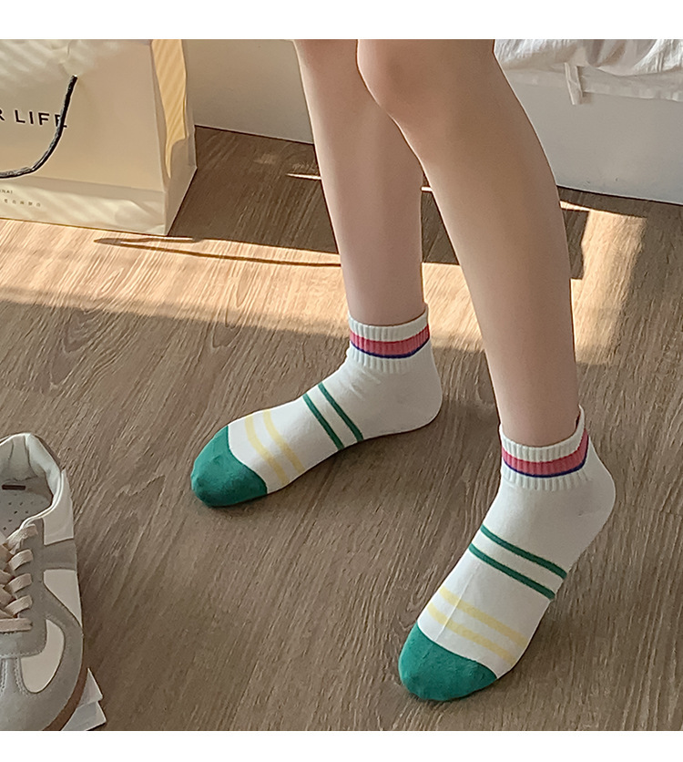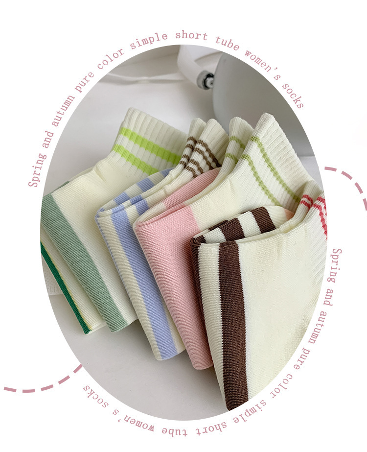 無地のショートソックス、女性用純綿薄手カラーソックス、スポーツ用春秋ストライプ中筒ソックス、吸汗性と通気性に優れています。