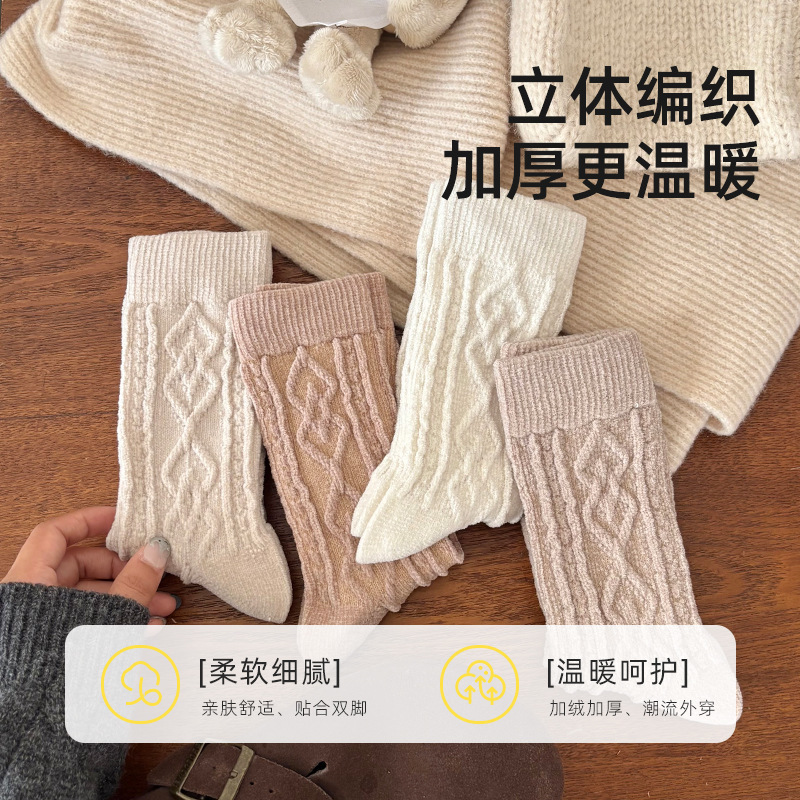 袜子秋冬法式姣花兔绒袜保暖加厚软糯堆堆袜百搭韩系ins风中筒袜