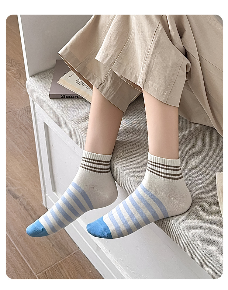 女性用春夏無地二重編みミドル丈ソックス卸売 日本風ストライプトレンド 韓国東大門風重ね履きソックス 吸汗性