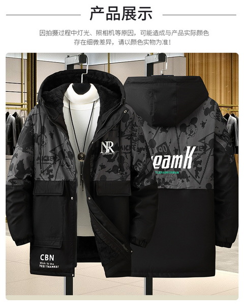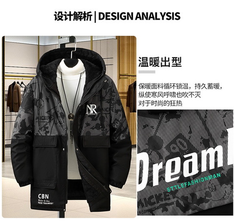 新款冬季新款男士加肥加大码中长款时尚休闲潮牌连帽加厚棉衣808