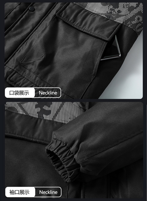 冬の新型綿服男は2024年に帽子付きコートを厚くした中性風のブランドの中のロングタイプの工装綿服男である