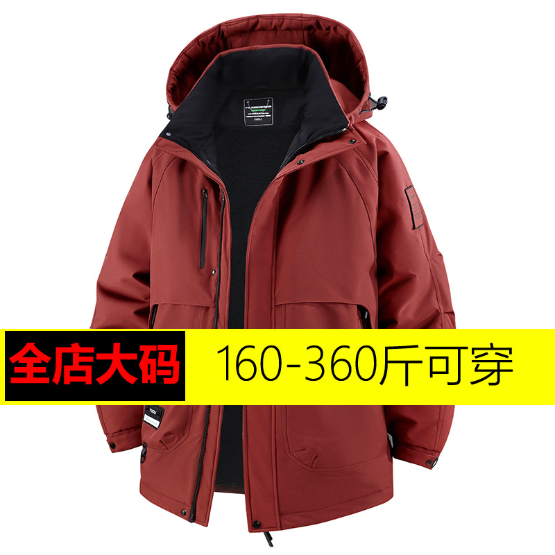 新款男士冬季加绒大码男装宽松工装潮胖子加肥加大加厚外套2560-1