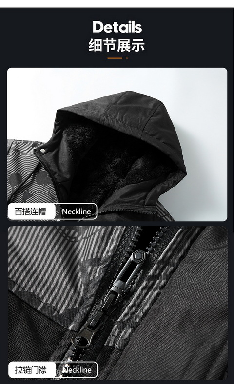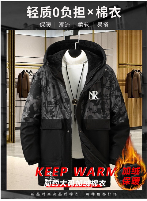 2025大码男装棉服加肥加大棉衣拼接加棉加厚保暖连帽宽松休闲潮流