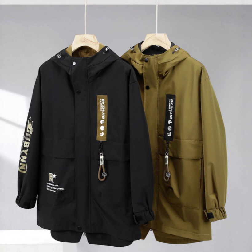 加肥加大码男秋季休闲风衣连帽外套宽松特大号男装潮胖子潮牌夹克