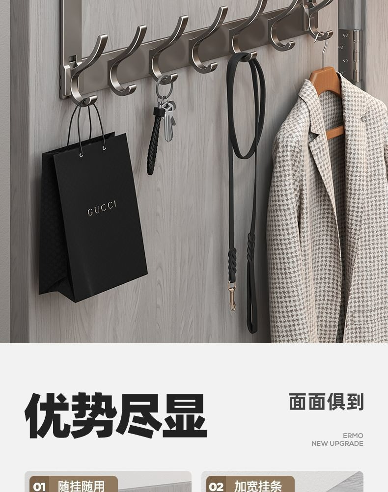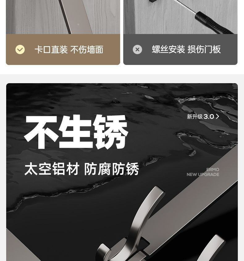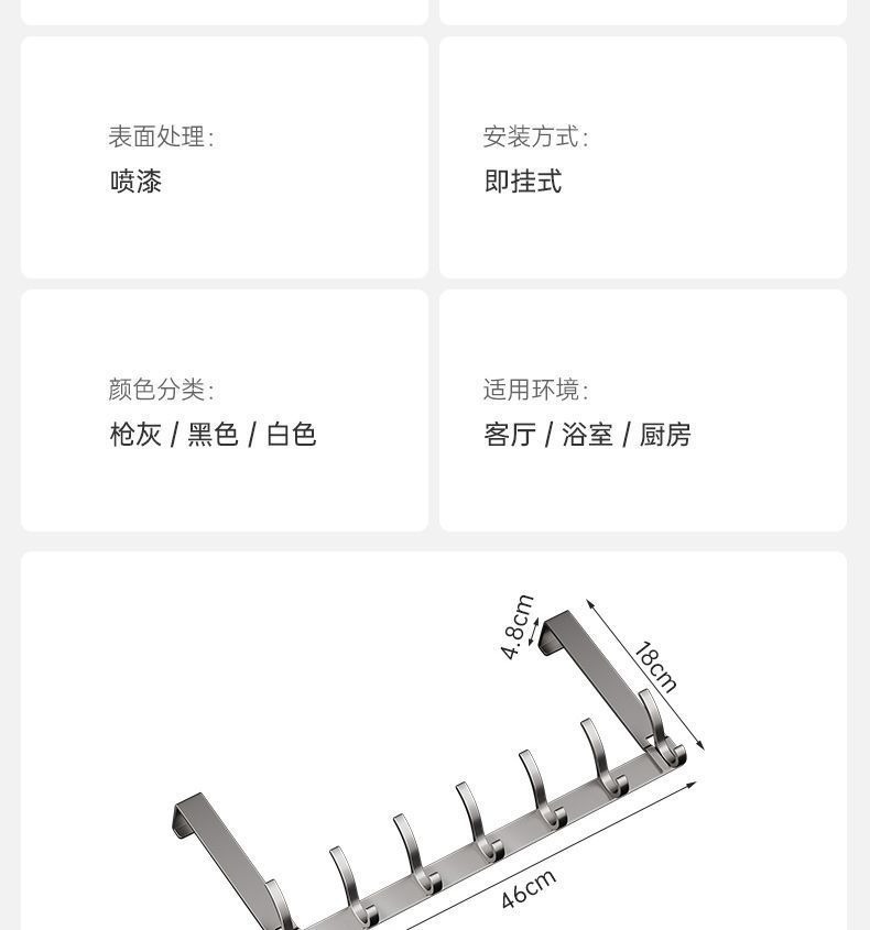 免组装门后挂钩入户玄关免打孔强力挂钩挂衣钩墙上衣帽钩浴室收纳