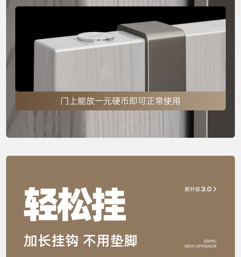 穴なしドアの後ろにハンガーを掛けます。寝室のドアには跡がありません。