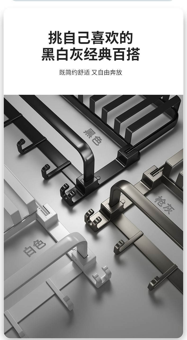 穴を開けない宇宙アルミハンガーフック壁掛け式フックフック服帽子フック子浴室銃グレー