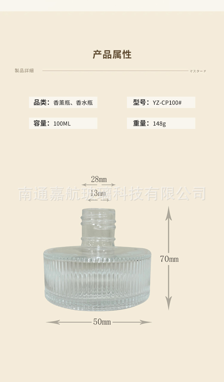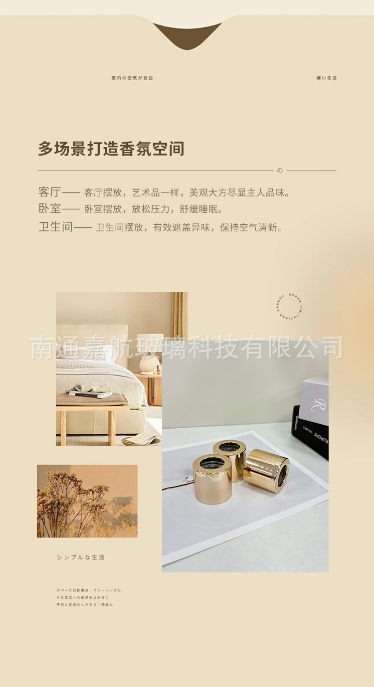 厂家批发200ML实色贴花圆柱香薰空瓶无火藤条挥发空瓶室内玻璃瓶
