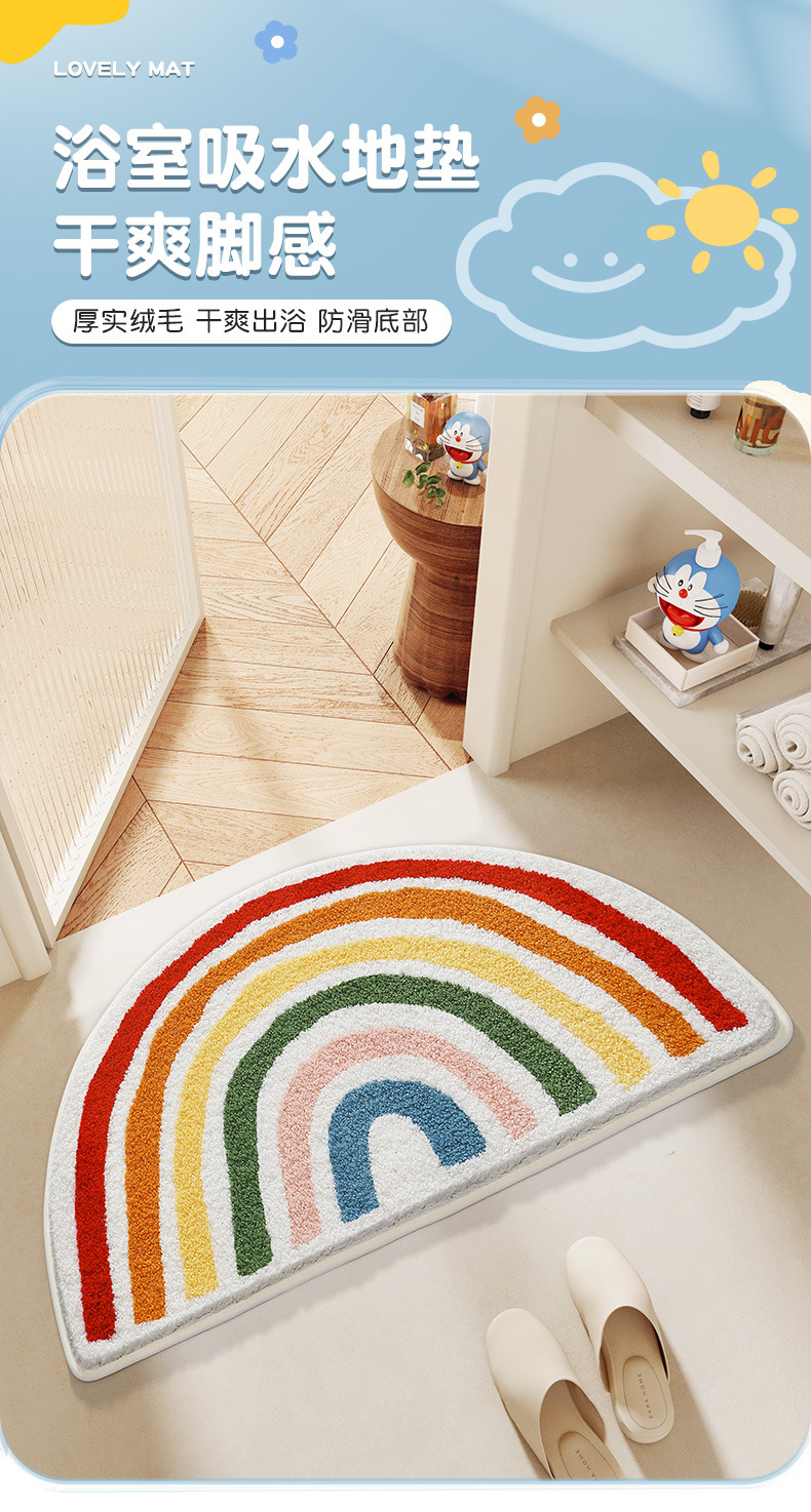 Ins風虹浴室マット吸水マット家庭用トイレの玄関マット半円滑り止めカーペットの玄関マット