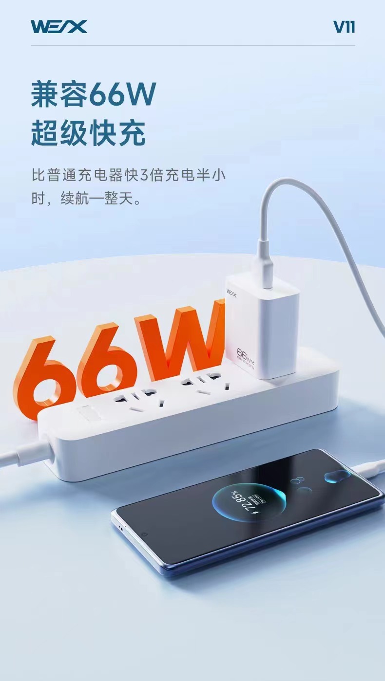 新製品威立訊v 11は全互換で66W高速充電ヘッドを適用します。